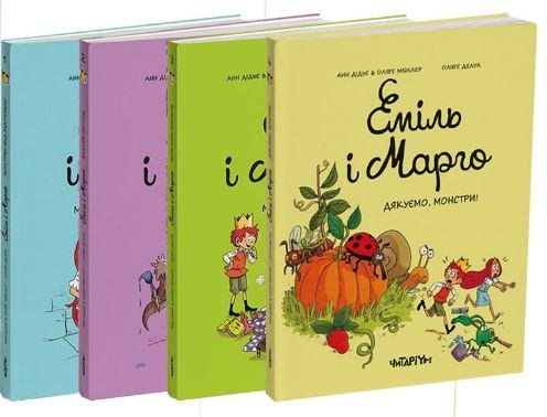 Комплект “Еміль і Марго” складається з 4 книжок про неймовірно веселі пригоди брата та сестри, а також їх друзів монстрів. Всі книги виконані у стилі комікси, тому будуть надзвичайно легкими для читання. У комплект увійшли чотири книжки: “Еміль і Марго. Монстрам вхід заборонено”, “Еміль і Марго. Жахливі пустощі”, “Еміль і Марго. Монстрячі бешкети” та “Еміль і Марго. Дякуємо, монстри!”.