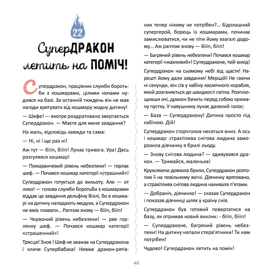 Ця яскрава збірка відкриває дітям дивовижний світ, де міфічні істоти мають такі ж почуття та характери, як і справжні люди. На сторінках книжки мешкають найрізноманітніші персонажі, серед яких є відважні сміливці та сором’язливі мрійники, веселі жартівники та зворушливі шукачі пригод. Кожен із тридцяти сюжетів присвячений особливим подіям із буднів крилатих героїв. Малеча зможе простежити за тим, як великі рептилії опановують непросте мистецтво польоту на малій висоті або вперше пробують випускати вогняне полум’я. Хоча події розгортаються у казковому вимірі, проблеми героїв є дуже зрозумілими та близькими кожній дитині. Автор майстерно використовує образи драконів, щоб ненав’язливо навчити юних читачів вірити у власні сили та з повагою ставитися до тих, хто чимось відрізняється від інших. Оповідки допомагають малюкам усвідомити власну унікальність через призму кумедних та повчальних ситуацій. Завдяки лаконічному викладу видання ідеально підходить для сімейного читання перед сном. Кожна окрема історія займає рівно одну сторінку, що дозволяє батькам зручно дозувати годину для вечірньої казки. Ця книга стане чудовим подарунком, який наповнить дитячу кімнату магією та подарує простір для фантазії перед сладким сном.