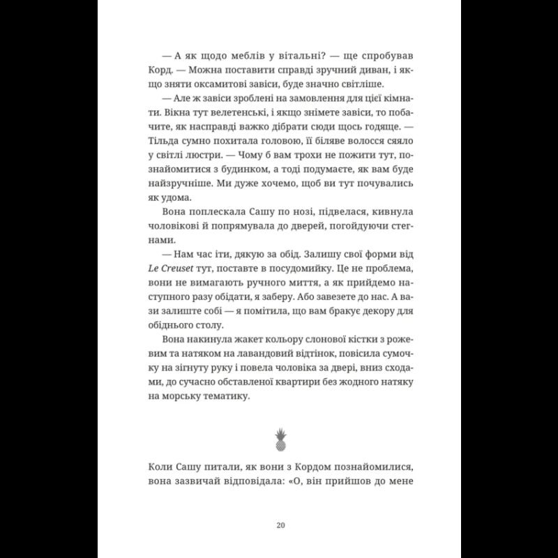 Ананасова вулиця – вражаючий роман Дженні Джексон “Ананасова вулиця” – це літературний шедевр, що занурює читача у світ елітного Нью-Йорка. Авторка, Дженні Джексон, з неймовірною точністю описує життя сімей, для яких розкіш і соціальний статус відіграють визначальну роль. Сюжет роману Події розгортаються серед живописних вулиць Брукліна, де мешкають забезпечені мешканці. Центральні герої постійно балансують між прагненням бути щасливими та вагою матеріальних благ. У творі порушені теми грошей, внутрішніх конфліктів та любові, яка часто не корелює з фінансовою стабільністю. Чому варто прочитати? Глибокий погляд на вплив багатства на людські стосунки. Іронічне, але водночас чуттєве зображення соціального середовища. Актуальна тема для сучасного суспільства, де матеріальні цінності часто переважають над справжніми почуттями.