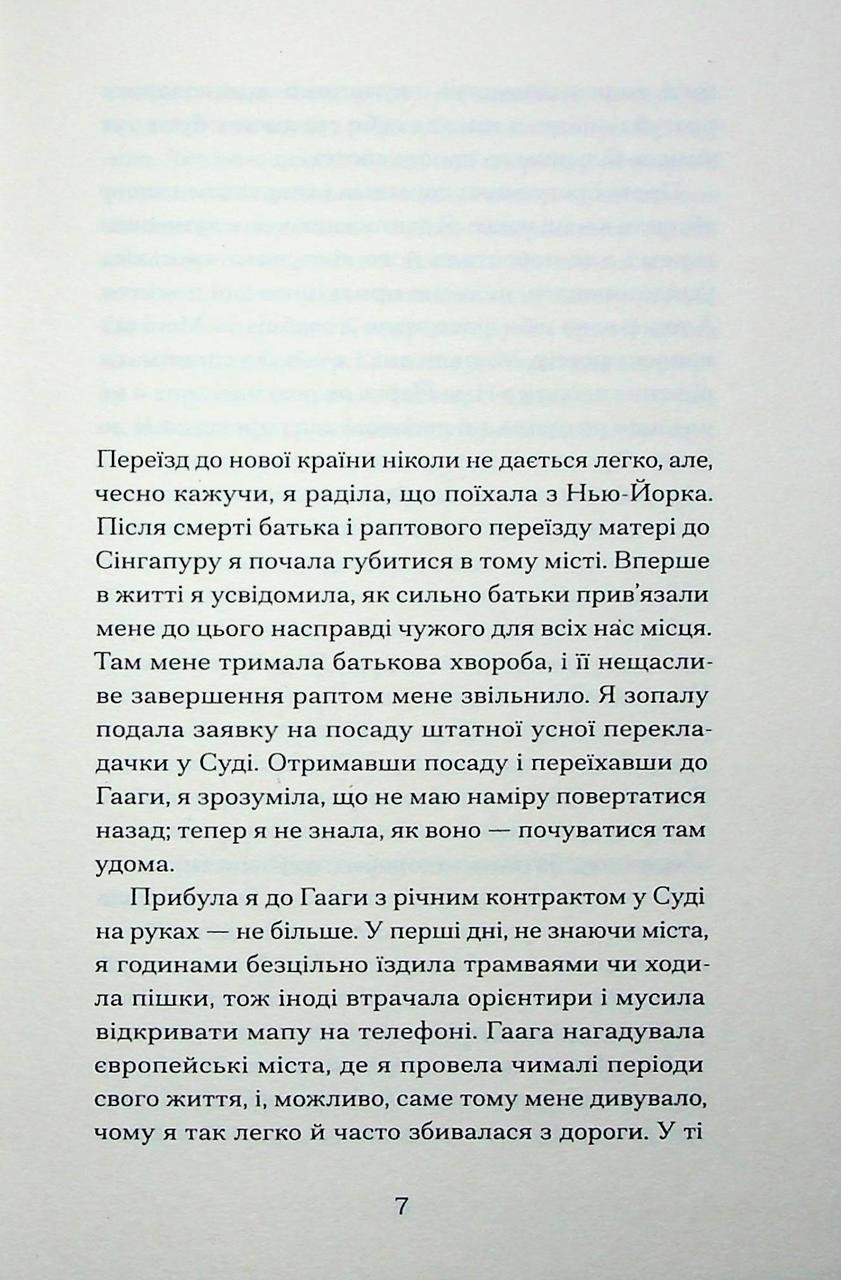 Життя у Гаазі обіцяло молодій перекладачці, що прибула сюди з бурхливого Нью-Йорка, довгоочікуване відчуття стабільності. Маючи за плечима досвід життя у багатьох країнах та вільне володіння кількома мовами, вона щиро сподівається знайти серед тихих нідерландських вулиць те саме місце, яке можна було б без вагань назвати будинком. Проте робота в Міжнародному суді та нові знайомства швидко втягують її у вір подій, де межа між професійним обов’язком та особистими переживаннями стає майже непомітною. Її будні перетворюються на складне переплетіння приватних та глобальних криз. Відносини з Адріаном приносять більше запитань, ніж відповідей, адже він, хоч і розійшовся з дружиною, залишається емоційним заручником свого минулого шлюбу. Водночас близька подруга Яна стає мимовільним свідком спалаху жорстокості, і цей випадок починає дивно манити перекладачку, змушуючи її шукати логіку там, де панує хаос. Кульмінацією стає нове робоче завдання: вона має стати голосом колишнього диктатора, якого судять за найстрашніші злочини проти людства — геноцид та військові звірства.