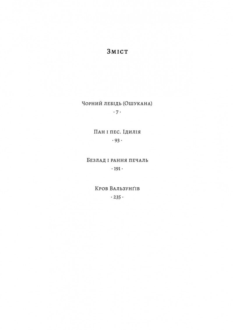 Під музыку валькірій Вагнера представляємо другий том вперше перекладеної на українську мову вібраної новелістики письменника, філантропа та нобелівського лавреата Томаса Манна. Заборонена любов і відверта сексуальність, чуттєвість у сутінках Першої світової війни та страх у буремну епоху становлення нацизму, повернення до міфологізму та невідворотне усвідомлення власної смертності. «Чорний лебідь» та інші новели — це низка короткої й водночас глибокої прози німецького романіста, якому вдалося зберегти честь там, де панує безчестя, і знайти шлях до художньої правди в час, коли машина смерті чікала на шкірного непокірного. До іншого того увійшли: коротке оповідання «Пан і пес. Ідилія» (A Man and His Dog, 1918); (The Black Swan, 1954).