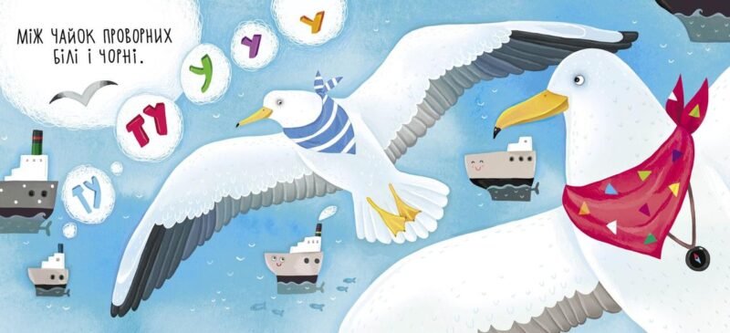 «Великі й маленькі кораблі пливуть морем: ту-ту-ту! Вони прямують до смітливих портів у різних куточках світу. Кораблі супроводжує котик, якому потрібна ваша допомога. Готові підказати йому дорогу додому?