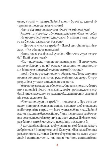 Одного дня розважлива й кмітлива Полінка, вона ж Велика Мандрівниця маленького розміру, вирішила зазирнути за двері, на яких було написано «Куди не треба», — і потрапила до казкового королівства, жителі якого щодня коять бодай одну нісенітницю, яку потім нестримно святкують. Чи може бути щось цікавіше і несподіваніше? Якщо ви розгорнете цю книжку — миттєво потрапите в пригоду, під час якої доведеться вислухати безліч дурниць, впоратися з величезним тортом, познайомитися з королевою Нісенітницею та її поштою, і тоді нарешті вдасться знайти шлях «куди треба», тобто додому. Захоплива, забавна книжечка для дітей, герої якої батькам видадуться не такими вже й вигаданими.