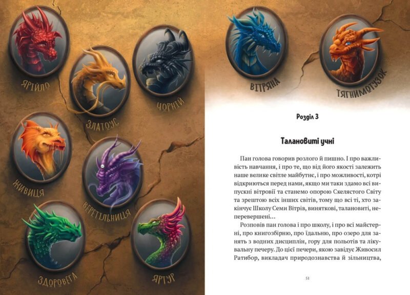 Пригода зі спасінням Райського саду вже стала легендою. Але першорічки Школи Семи Вітрів встряють у нову оказію. Брати Товчикамені — вогняно-червоний Ярійло, золотавий Златоус та чорнопикий Чорний — зустрічають Вітряну. Ця синя драконка — напівлюдина, і має вона особливий дар, на який вже накинув оком дехто з учителів. Та мало кому відомо: Школа Семи Вітрів колись зазнала химерної слави. Багато років тому дракон Білотур домігся, щоб таланти відчиняли лише чистокровним зміям та драконам. Напівкровки ж — це неприємна помилка природи, і їм не місце в цьому навчальному закладі. І ось темне минуле знову пнеться зовні. Через свою напівкровність та могутній дар Вітряна опиняється у небезпеці. Брати Товчикамені кидаються їй на допомогу. Та від лиха: їхня життя тепер також під загрозою…