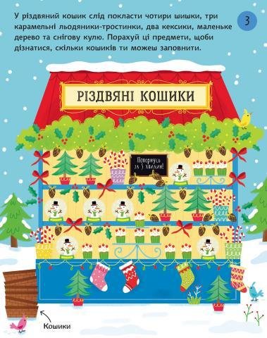 У цій інтерактивній книжці знайдете багато сніговиків, північних оленів, ялинок та інших різдвяних подарунків та смаколиків, а ще — 70 відривних аркушів із загадками-головоломками, аби не нудьгувати на зимових канікулах!