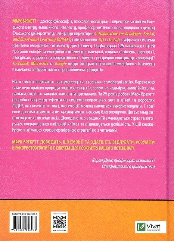 Наші емоції впливають на самопочуття, стосунки, самореалізацію. Переважно саме нерозуміння природи власних почуттів, сором за надмірну емоційність чи, навпаки, скутість заважає нам стати щасливими. За 25 років роботи Марк Брекетт розробив напрочуд ефективну систему покращення життя дітей та дорослих ЛІДЕР, яка полягає в тому, що емоції можна навчитися використовувати, і тоді вони будуть допомагати, а не шанувати нашим благополуччям. Цю систему застосовують у тисячах шкіл. Доведено, що завдяки ній зменшуються стреси та вигоряння, покращується шкільний клімат та підвищується успішність. У цій книжці Брекетт ділиться своєю перевіреною стратегією з читачами.