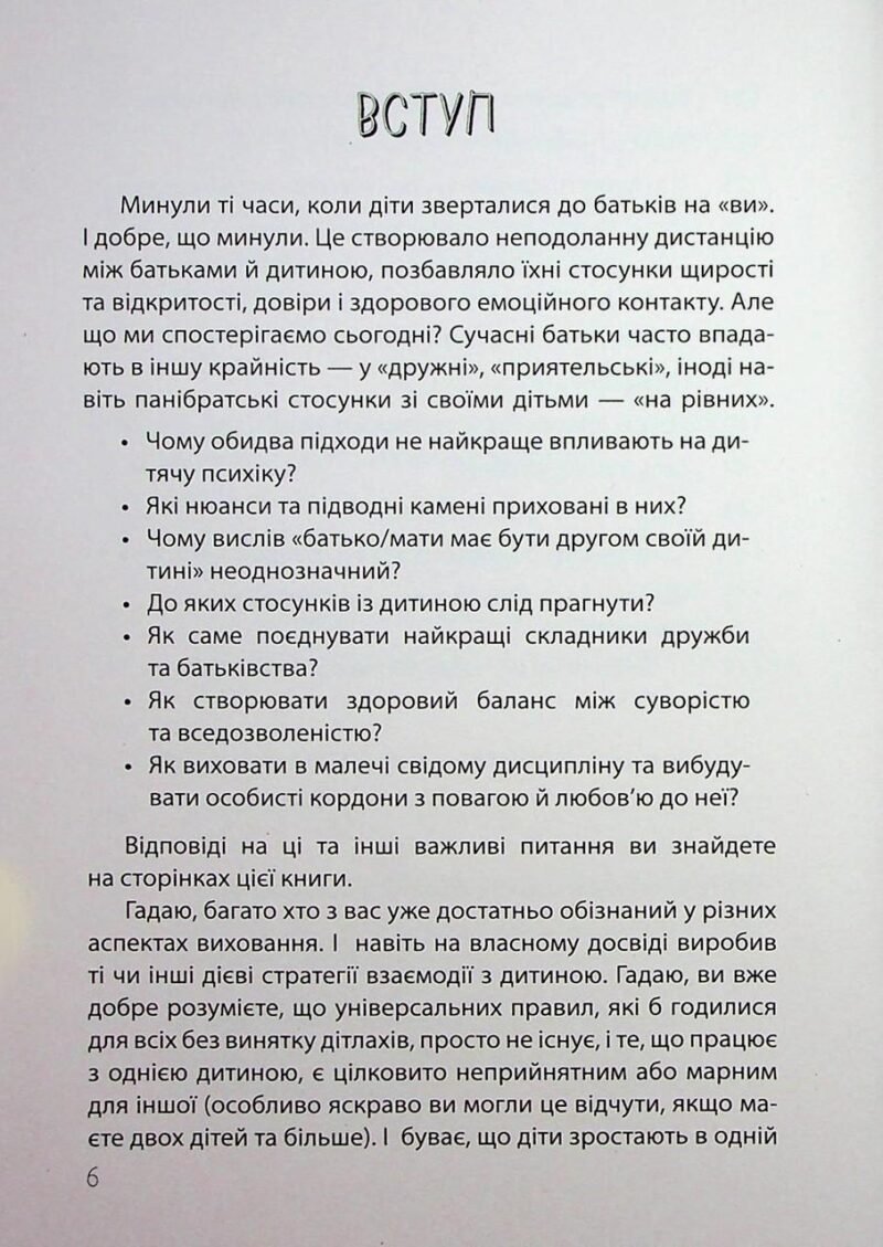 Батьківство — це шлях, вистелений сумнівами: від страху бути надто суворим до побоювання втратити довіру дитини. Ця книжка створена як професійний компас для тих, хто опинився у лабіринті виховних запитань та шукає надійні орієнтири. Авторка пропонує сміливий і глибокий погляд на структуру батьківщини, розвінчуючи популярний міф про те, що батьки мають бути насамперед «друзями» своїм дітям. Насправді діти остро потребують не рівного собі товариша, а впевненого, люблячого лідера, який забезпечить їм відчуття безпеки та чіткі життєві межі. Видання пояснює, чому відсутність здорової ієрархії шкодить психіці дитини, руйнує її впевненість і позбавляє необхідної опори. Книга навчить вас бути тим самим авторитетним керівником, чиє слово має вагу, а серце завжди відкрите для підтримки.