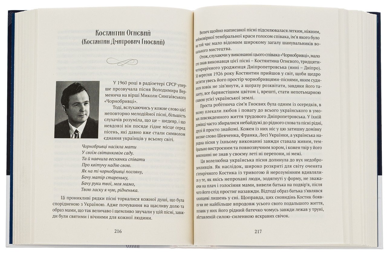 Це видання постає як велична панорама українського культурного генія, що зібрала під однією обкладинкою життєпису найзнаковіших статей нашої історії. У популярній та доступній формі автор знайомить читача з тими, хто став обличчям української нації на світовій арені — від видатних майстрів слова до легендарних голосів сцени та зірок кіноекрану. Шкірна сторінка книжки просякана глибоким пошаною до митців, чия творча енергія не лише сформувала вітчизняну культуру, а й залишила помітний слід у загальносвітовій мистецькій спадщині. Завдяки майстерному використанню художнього слова автор перетворює сухі біографічні справки на захопливі розповіді. Ви не просто дізнаєтесь дати та факти, а окунетесь у внутрішній світ творців, зрозумієте мотиви їхніх вчинків та відчуєте атмосферу епох, у яких вони жили та творили. Це книга про те, як особиста частка шкірного митця впліталася в канву національного відродження, стаючи символом незламності та високого духу нашого народу.