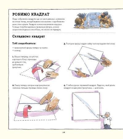 Ця книжка розповість найцікавіші факти про такі прості й водночас важливі фігури: квадрат, трикутник та коло. Навчити вимірювати куті та обчислювати площу, малювати ідеально пропорційні фігури без інструментів і робити з них універсальні конструктори. Діти дізнаються, як за допомогою квадрата планували найдавніші міста, а за допомогою трекутника зводили найміцніші мости, як будували кам’яні кола Стоунгенджу та вимірювали висоту єгипетських пірамід. А ще на юних читачів чекають захопливі майстер-класи, фокуси з фігурами та дивовижні експерименти.