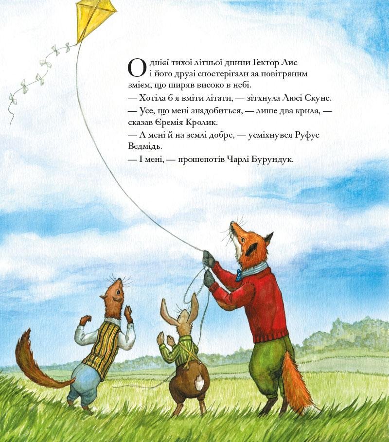 Сюжет книги розповідає про один літній день, коли Гектор Лис та його друзі спостерігають, як повітряний змій ширяє на вітрі. Їм спадає на думку божевільна ідея: вони теж хочуть літати, як птахи. Чи зможуть друзі разом спроектувати та побудувати літальний апарат? Чи зможуть вони знайти відважного пілота? А що станеться, якщо щось піде не так? Дізнайтеся з нової пригоди про Гектора Лиса та його друзів. Книга створена для тих: хто любить неймовірні пригоди кому подобається красиві ілюстрації кому хочеться незвичайного сюжету