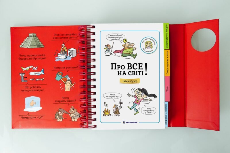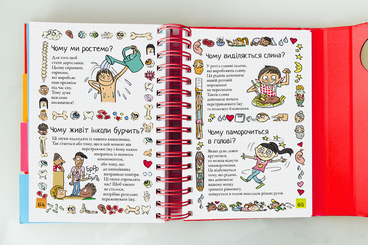 «Мам, а чому в мене очі карі?», «Тату, а звідки беруться діти?», «А навіщо вчимо ту трубу в небо?». Якщо ви щодня проходите такий іспит на ерудицію, ця енциклопедія — саме те, що вам потрібне. Тут зібрані прості та зрозумілі відповіді на найскладніші дитячі «чому». Для зручності книга поділена на чотири великі блоки: «Мистецтво та історія», «Повсякденне життя», «Тіло» та «Природа та космос». Завдяки яскравим закладкам-розділювачам ви миттєво знайдете потрібну тему. Лаконічні тексти та яскраві ілюстрації роблять процес пізнання веселим для малечі та легким для вас.