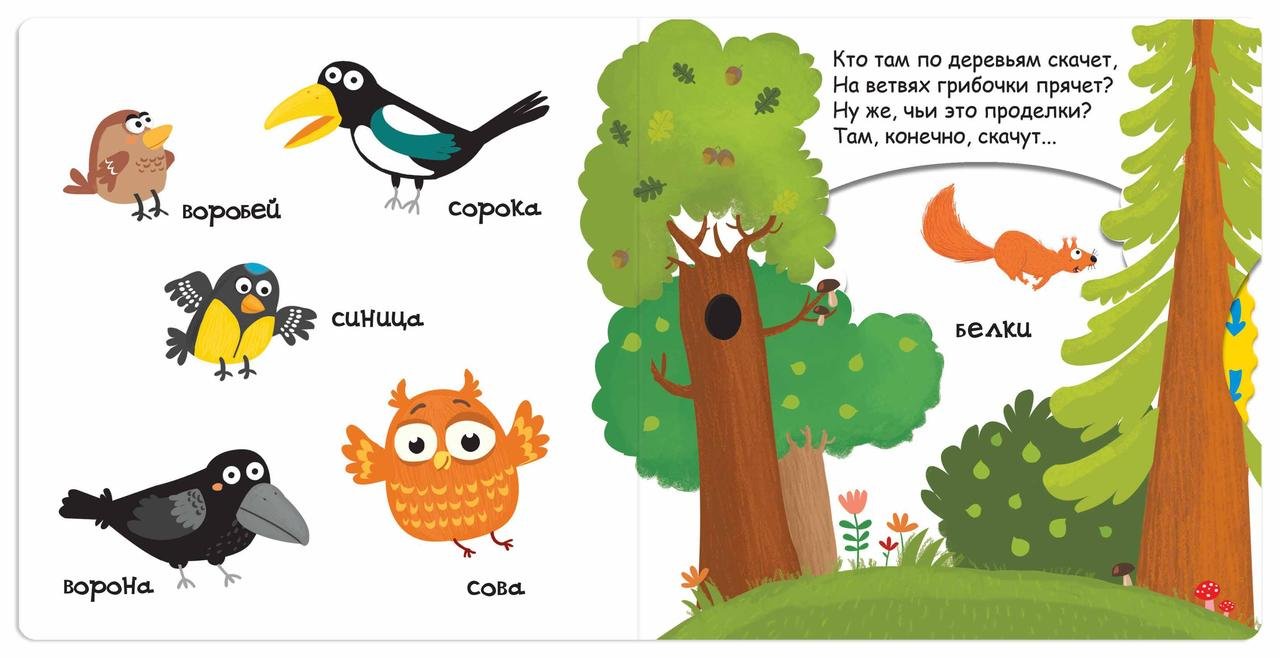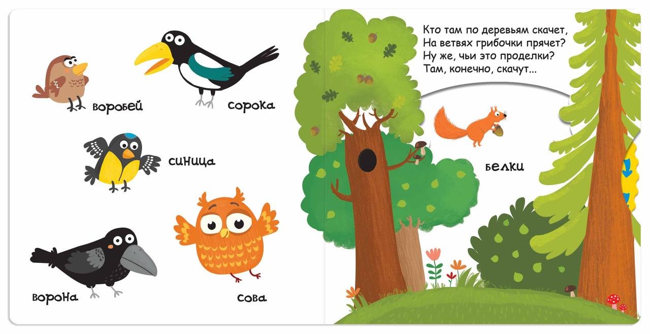 Книжка познайомити з лісовими тваринами, намальованими на кожній сторінці. А про деяких розповідає так, що треба виявити кмітливість і здогадатися, про кого йдеться, і тільки потім побачити цього «героя». Унікальні розвиваючі книги з рухомими елементами заохочують дитину до знань, а також сприяють розвитку дрібної моторики, пам’яті та уваги, навичок мовлення та лічби. Разом з новими виданнями маленькі читачі знайомляться з квітами, цифрами, морськими та лісовими мешканцями, розширюватимуть словарний запас.