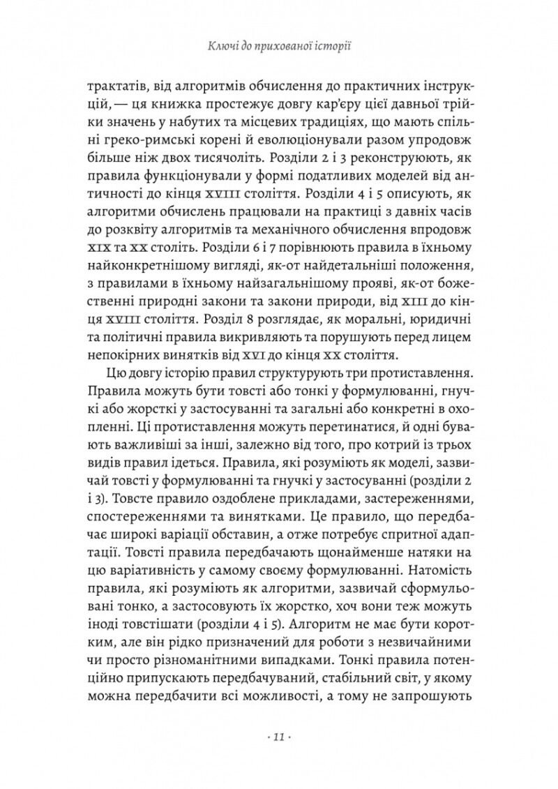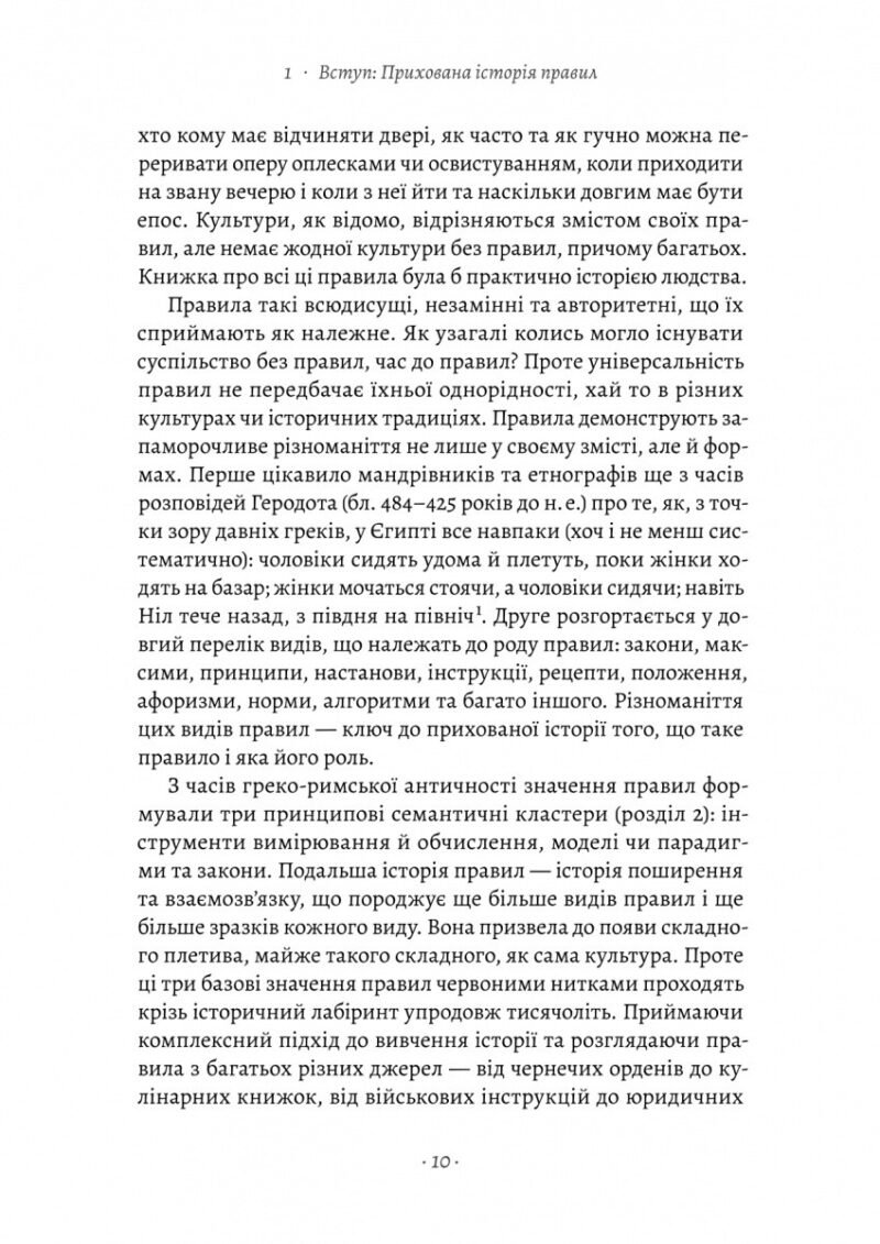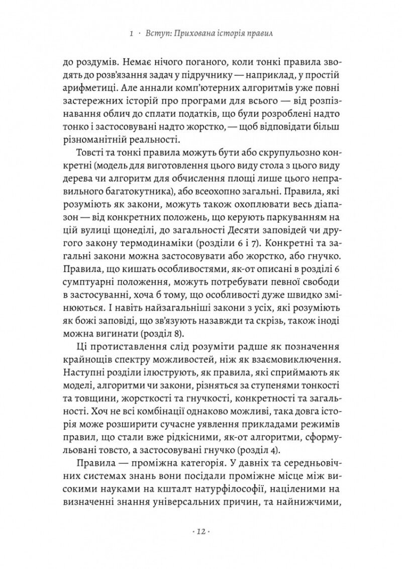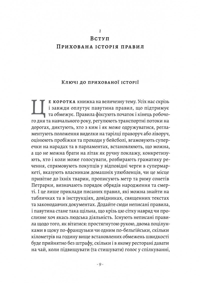 Правила впорядковують майже кожний аспект нашої життя. Вони визначають нашу робочу годину, диктують, як ми водимо машину та накриваємо на стіл, організовують нашу життя від народження до смерті. Ми можемо погоджуватися з правилами, боротися проти них чи узгоджувати щось абсолютно нове, але жодна культура не може обійтися без них. У книжці «Коротка історія правил. Чому ми робимо так, а не інакше» історикиня Лоррейн Дастон описує розвиток та еволюцію правил від давнини до сучасності. Вона яскраво ілюструє, як правила можуть змінюватися — як гнучкі правила стають жорсткішими, чи наоборот і як колись надокучливі приписи стають повсякденними нормами. Вона досліджує, коли правила працюють, а коли ні і чому деякі філософські проблеми пов’язані з правилами такі ж давні, як і сама філософія, а інші — такі ж сучасні, як комп’ютери.