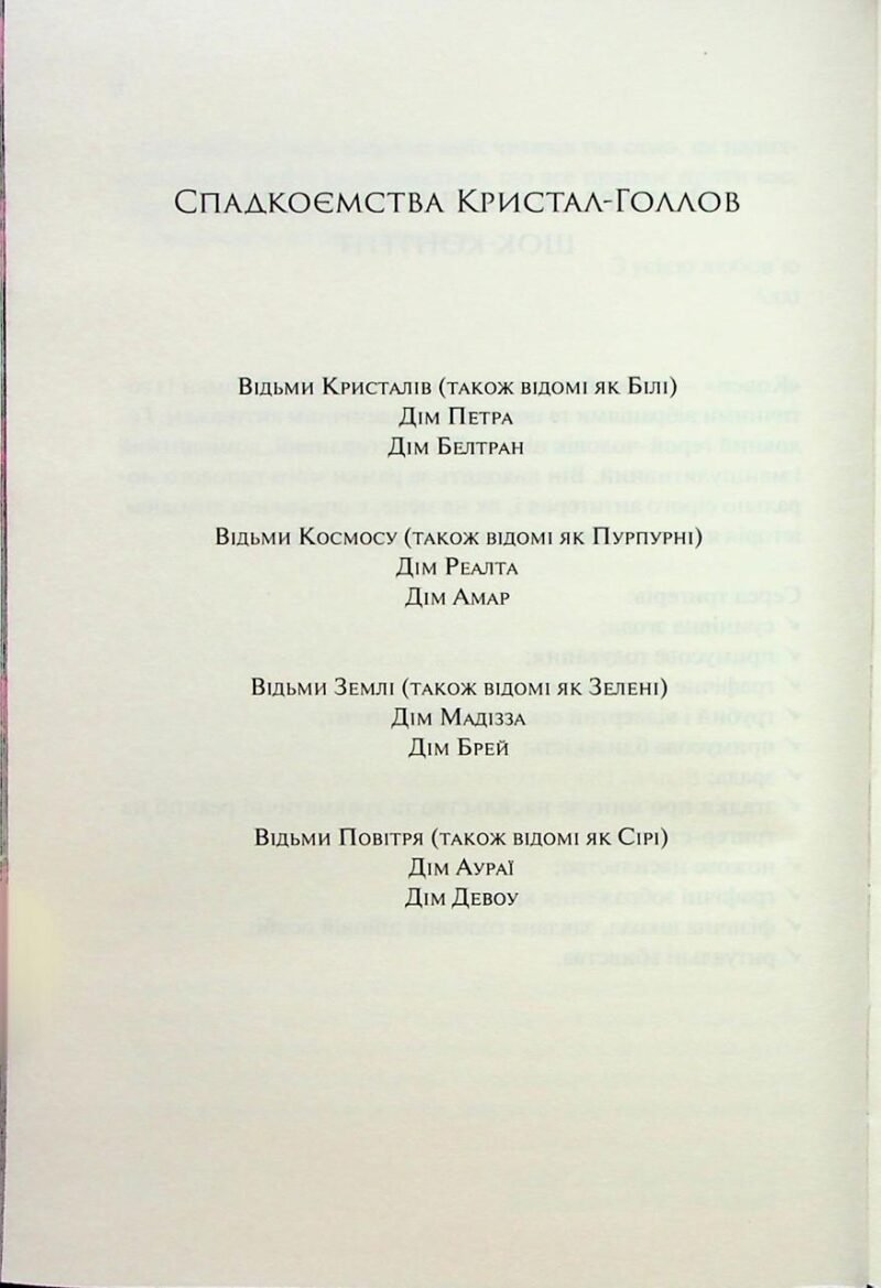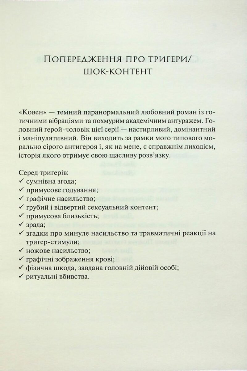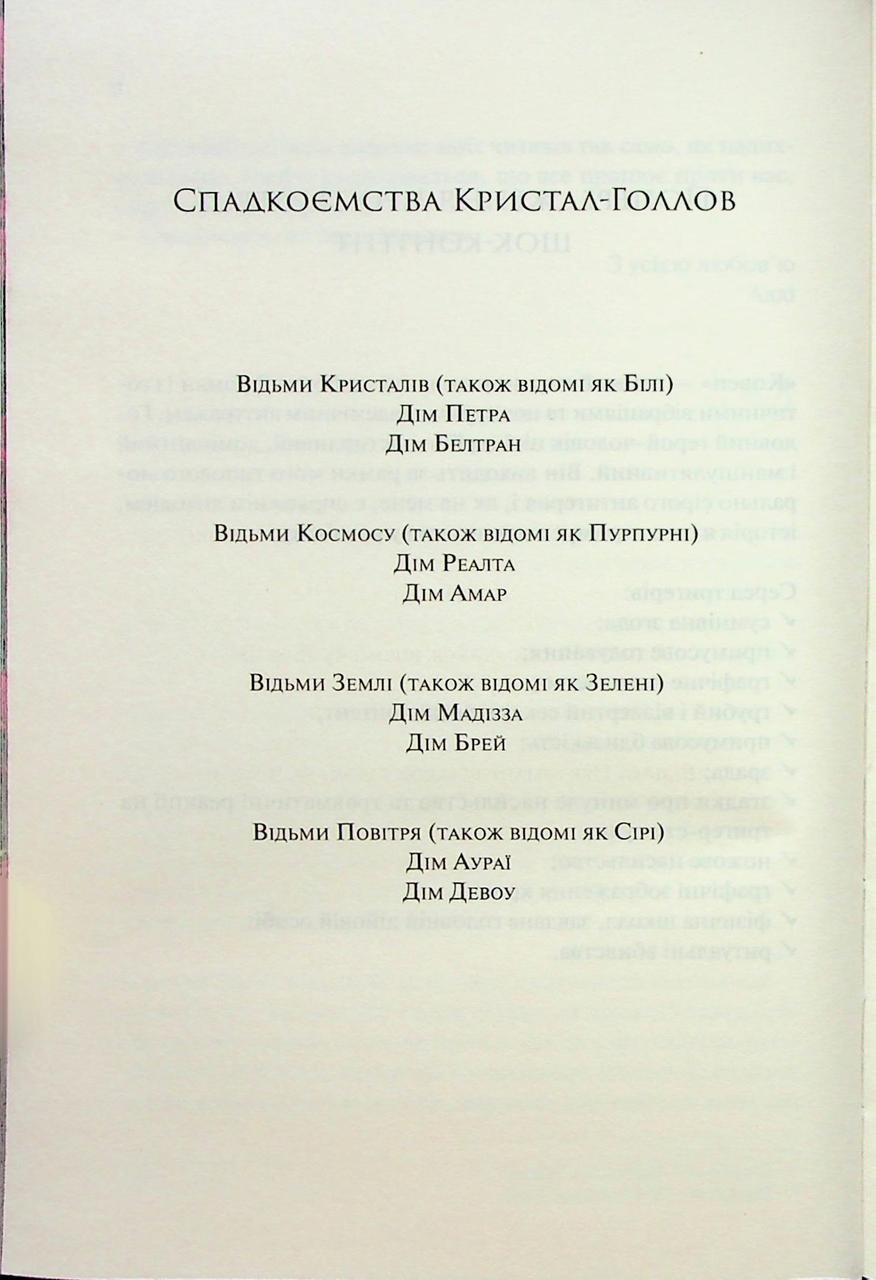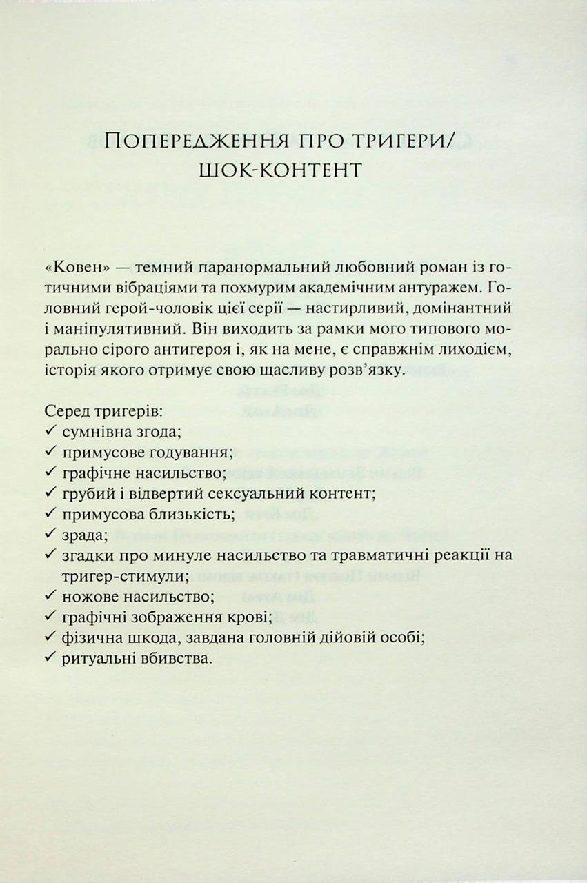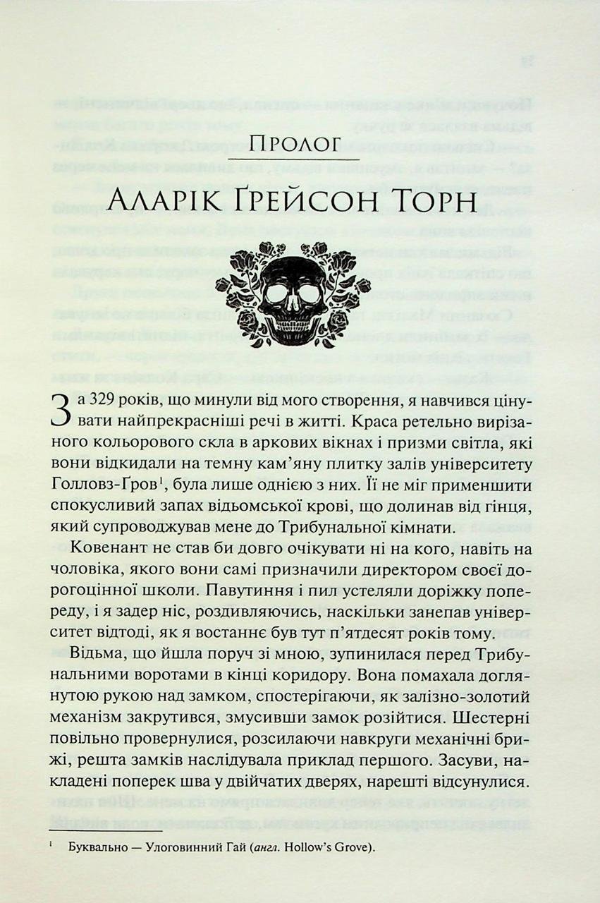 Мене виховували так, щоб я стала оружням у руках свого батька проти Ковену, який забрав у нього сестру. І тепер я будь-що маю вберегти свого брата від такої ж долі. Щоб виконати свій обов’язок, я мушу вирушити до престижного університету Голловз-Ґрів. Тут найкращі та найрозумніші відьми вчаться практикувати магію, вільні від людського осуду. Тож жодного косого погляду у мій бік. Єдиний, хто не зводить з мене сповнених ненависті та люті очей, – це директор Голловз-Ґрів Аларік Ґрейсон Торн. Він зневажає все, за що я борюся. П’ятдесят років тому університет уже закривали. І зараз кривава таємниця минулого загрожує вирватися з його стін.