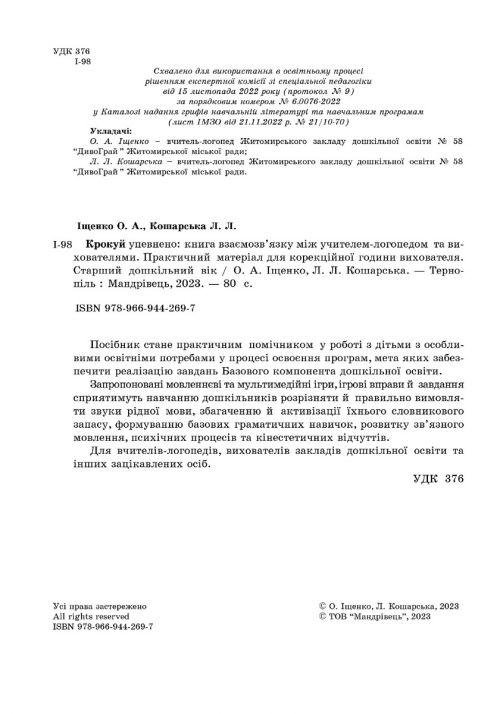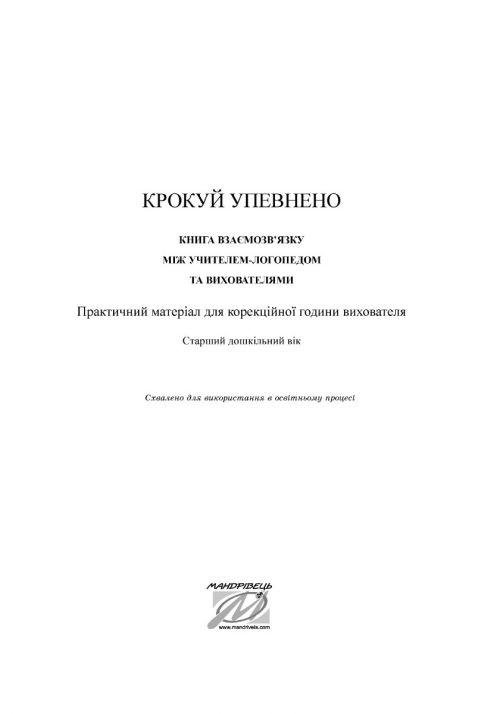 Книга Крокуй упевнено. Книга взаємозв’язку між учителем-логопедом та вихователями. Старший дошкільний вік. Логопедія.