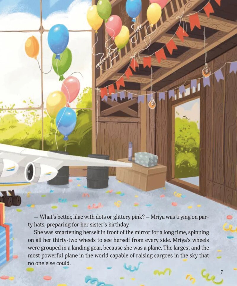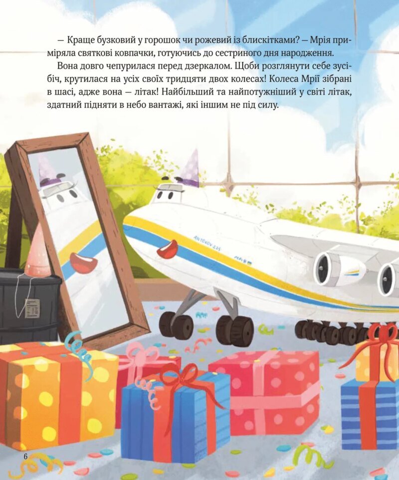Ця книжка створена у тісній співпраці з легендарним підприємством «Антонов». Саме тут народилися знамениті на весь світ «Руслан» та «Мрія». Авторка Ірина Лазуткіна оживляє залізних птиц і відкриває дітям їхні таємниці. Найпотужніший літак планети готується до важливого свята. Мрія летить на день народження своєї сестрички з особливим подарунком. Маленькі читачі дізнаються, як народжуються літаки та чи полюбляють вони солодощі. Видання у цікавій формі знайомить малечу з гордістю української авіації та надихає мріяти про високе небо.