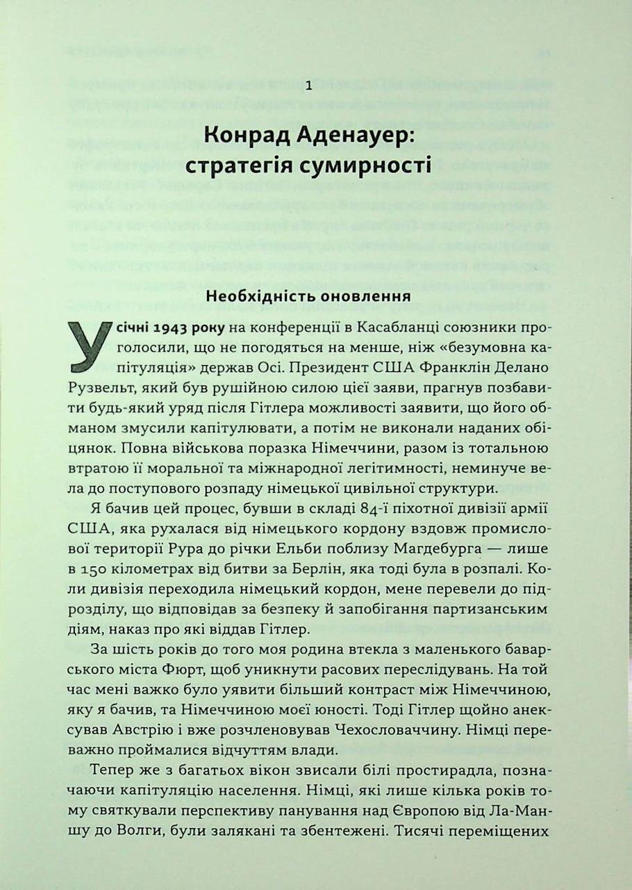 Коли світ летить біля прірву, історія кличе тих, хто здатний утримати небо. Генрі Кіссінджер, легенда світової політики, аналізує шлях шести лідерів, які прийняли визов у найтемніші години. Аденауер підняв Німеччину з руїн, де Голль повернувши велич Франції, Тетчер змінила Британію залізною рукою, а Лі Куан Ю створив диво на болоті. Разом із Ніксоном та Садатом ці статі демонструють, що справжнє лідерство — це не пошук лайків чи схвалення толпи. Це мистецтво приймати болісні, непопулярні, але рятівні рішення. Ця книга — хроніка мужності та інтелекту, підручник для тих, хто прагне зрозуміти механіку великої історії та роль особистості в ній.