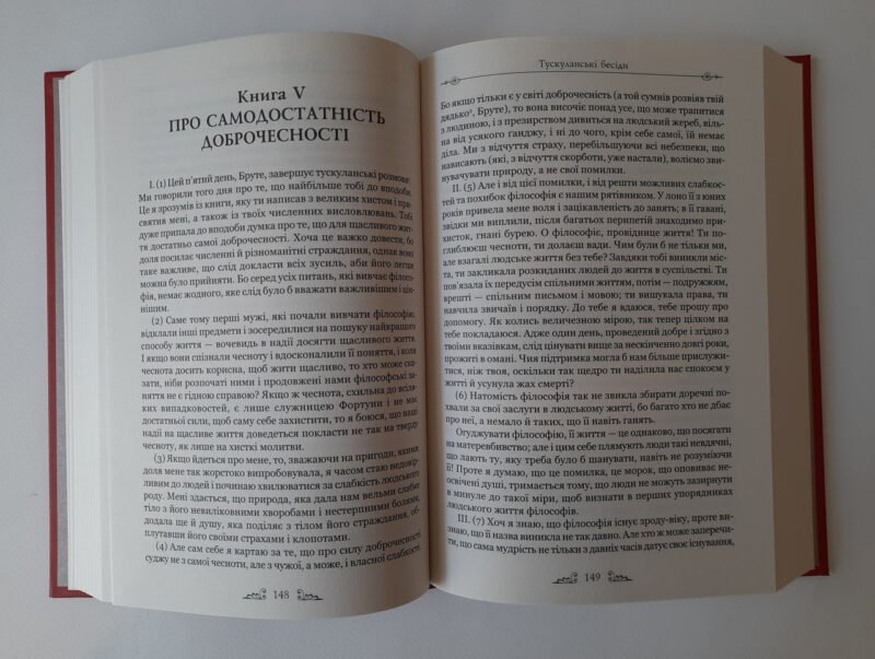 Марк Туллій Ціцерон (106–43 рр. до н. е.) — визначний римський оратор, філософ і політичний діяч. Його науково-творча спадщина різножанрова: промови, труди з ораторського мистецтва, морально-філософські трактати, епістолярій. Основною у трактатах «Тускуланські бесіди», «Про обов’язки» є проблема джерела та характеру людського счастья. Автор висновує, що щасливим може бути тільки «мудрий», а тому «немає мудреця, який був не щасливим». В Україні ці твори римського письменника окремим виданням друкуються вперше.