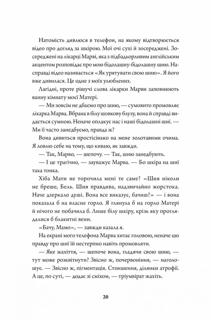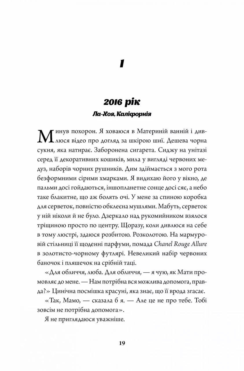 Для Бель зеркало завжди було не предметом інтер’єру, а божеством. З дитинства вона жила однією метою — наблизитися до недосяжного ідеалу своєї матері, перетворивши власне життя на нескінченний ритуал догляду за шкірою. Коли матір помирає через дивовижні обставини, Бель летить до Каліфорнії не оплакувати її, а розгадувати таємницю її вічної молодості. У її валізі немає жалобного вбрання, лише сіруватки та креми. Похорон перетворюється на сюрреалістичну виставу: загадкова жінка у червоному, натяки на «шлях роз» та материні червоні туфлі, які, наче зачаровані, ведуть Бель до культового спа-салону Rouge. Цей будинок на березі океану обіцяє вічне сяйво, але приховує демонів. Біля доведеться зануритися у мерзотну темряву по той бік зеркала, щоб зрозуміти: одержимість красою — це родинне прокляття, і ціна за нього може бути смертельною.