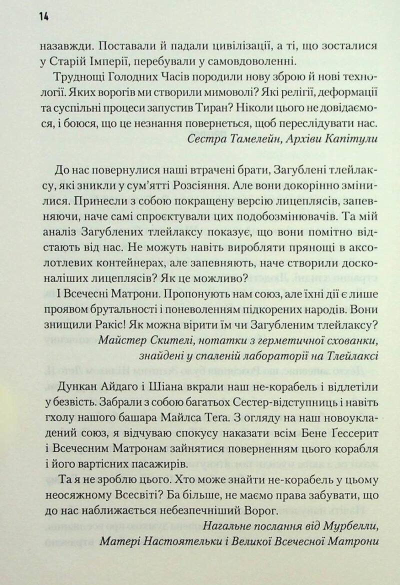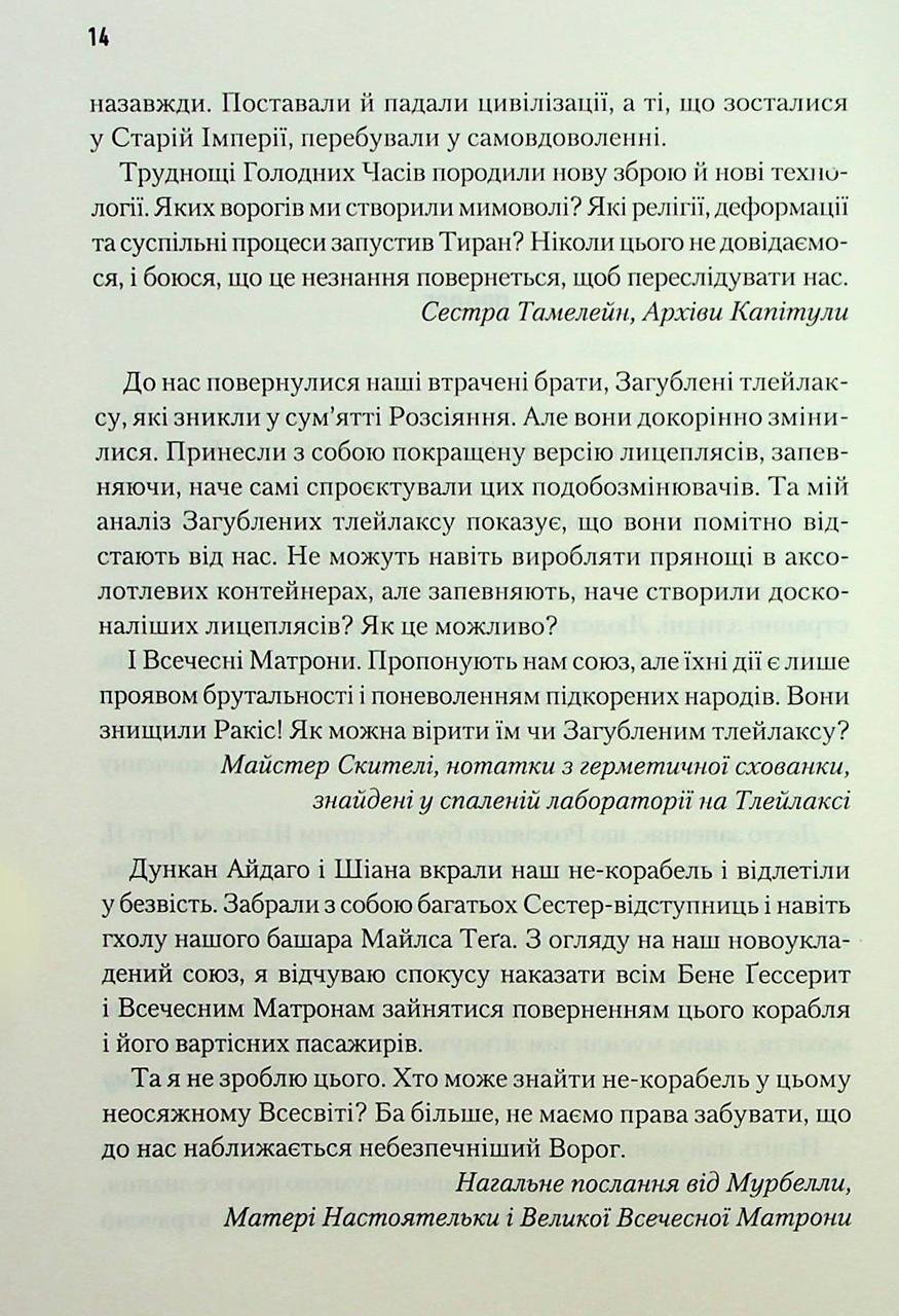 Унікальний науково-фантастичний роман, що підсумовує події, що відбувалися в оригінальній серії «Дюні». Екіпаж на чолі з Дунканом Айдаго вирушає на не-кораблі «Ітака» у шалену мандрівку: їм потрібно якнайшвидше втекти від небезпечного загадкового Ворога, водночас не розгубивши залишки своїх прянощів. Команді, що перебуває на кораблі, вдалося розкрити таємницю штучного виготовлення меланджу, тож завдяки цьому вони планують відродити тих, хто колись був ключовими статтями на арені Дюні: Пола Муад’Діба, Чані, леді Джессіку та багатьох інших. Людям Дункана, незважаючи на всю опасность цієї справи, в жодному разі не можна програвати в цій звитяжній битві. Адже тепер у їхніх руках частка всього людства.