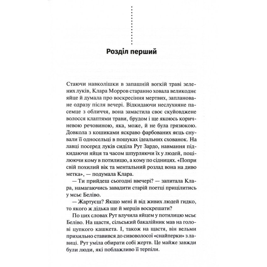 • У 2013 році за мотивами першої книги циклу було знято міні-серіал Still Life. Сосні настає весна. На деревах розпускаються бруньки, а перші квіти проростають крізь поталій сніг. Та разом з ними із землі пробиваються кості чиїсь моторошних таємниць. Під час святкування Пасхи дехто з мешканців вирішує влаштувати спіритичний сеанс біля старого будинку Гедлі. Як для того, щоб очистити село від зла. Та одна з учасниць сеансу раптово помирає. Ніхто не може бути певний, чи це природна смерть, чи на очах мешканців Трьох Сосон відбулося загадкове вбивство. Головний інспектор Арман Ґамаш прибуває розслідувати цю справу, яка змусить його зіткнутися із власними демонами. Про автора: Луїза Пенні – одна з найвідоміших канадських авторок. Її романами про інспектора поліції Квебека Армана Ґамаша без перебільшення зачитується весь світ. Авторка є переможницею багатьох літературних премій, зокрема New Bloody Dagger, Arthur Ellis Award, Anthony Award, Dilys Award, Barry Award.