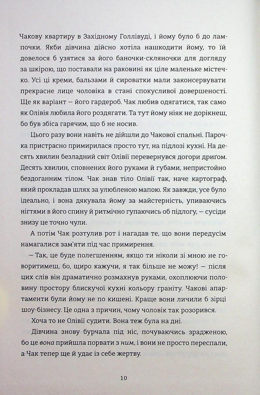 Ця книжка пропонує вибухову суміш гумору, драмі та сексуальної напруги. Актор-початківець та донька голлівудських зірок опиняються у пастці контракту. Головна умова їхнього збагачення полягає в абсолютній відсутності фізичного контакту при цілодобовій близькості. Чак відчайдушно прагне іншого шансу та готувань на всі заради примирення з дівчиною. Олівія намагається побудувати стіну байдужості заради фінансового спасіння рідного людини. Роман тримає у напрузі питанням про те, що переможе у цьому двобої. Героям доведеться вирішити, що для них важливіше — кругленька сума на рахунку чи можливість зцілити розбиті серця.