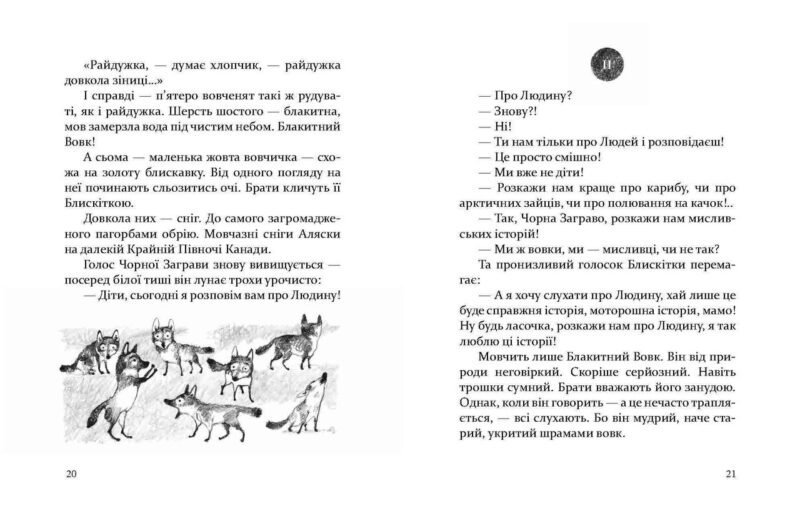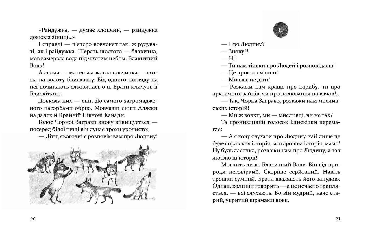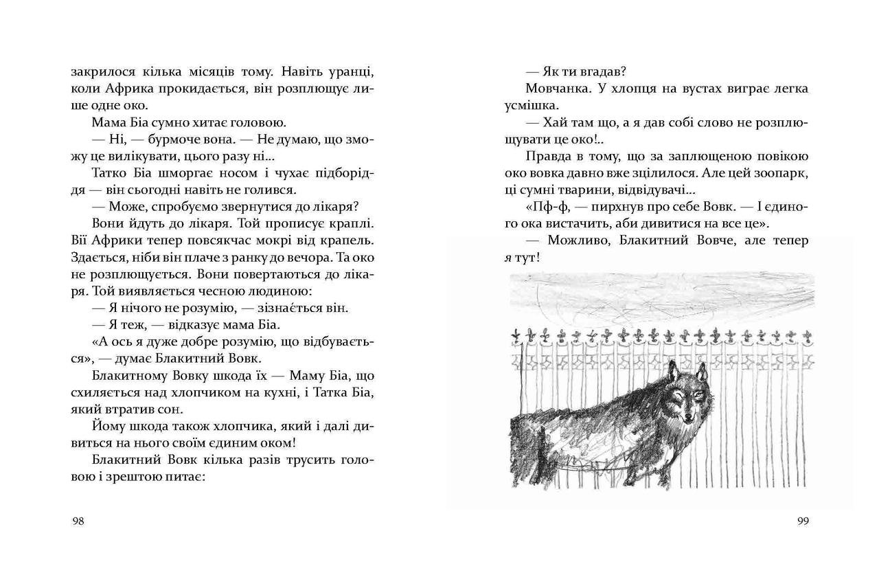 Полярний вовк із паризького зоопарку, вже понад десять років дивуватиметься на все, що відбувається навколо, лише одним оком. Якось до його клітки приходить хлопчик-сирота. І навіть в одному вовчому оці він читає біль і страждання. Хлопчикові не байдужа доля полярного вовка, тож він теж заплющує одне око і починає розповідати йому історії: сумні, веселі, захопливі… такі, що відкривають полярному вовкові нові грані світу і надавати перед ним питання, над якими він раніше не замислювався.