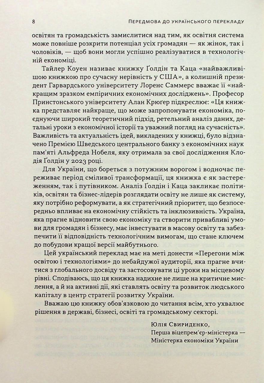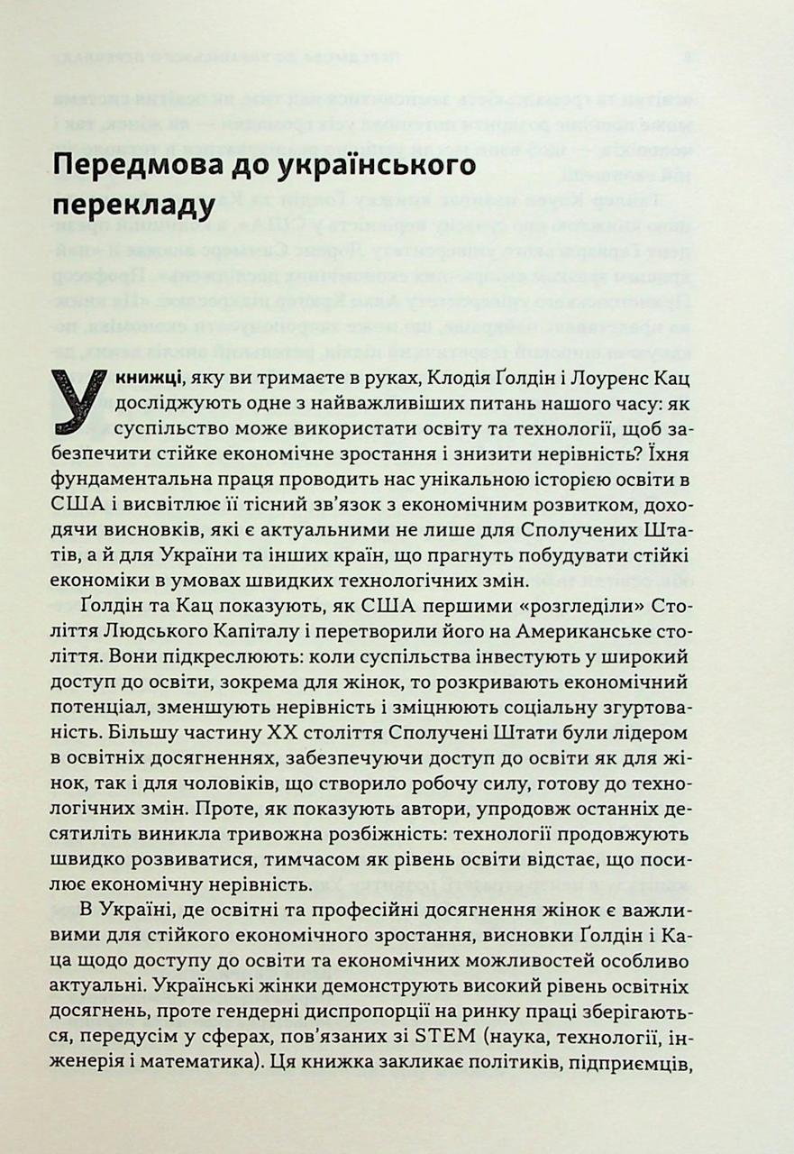 Технології змінюють ринок праці швидше, ніж люди устигають опановувати нові навички. Саме цей розрив породжує майнову прірву та соціальну напругу. У своїй фундаментальній роботі автори аналізують історію США та демонструють пряму залежність між рівнем освіченості населення та економічним зростанням. Книга містить потужну доказову базу та пояснює механізми, які дозволяють суспільству процвітати в епоху швидких змін. Головний висновок дослідження однозначний та безапеляційний. Єдиним способом забезпечити справедливий розподіл благ та уникнути розшарування суспільства є випереджальний розвиток освіти. Це незамінне чтиво для тих, хто шукає реальні шляхи розв’язання проблем бідності та економічної стагнації.