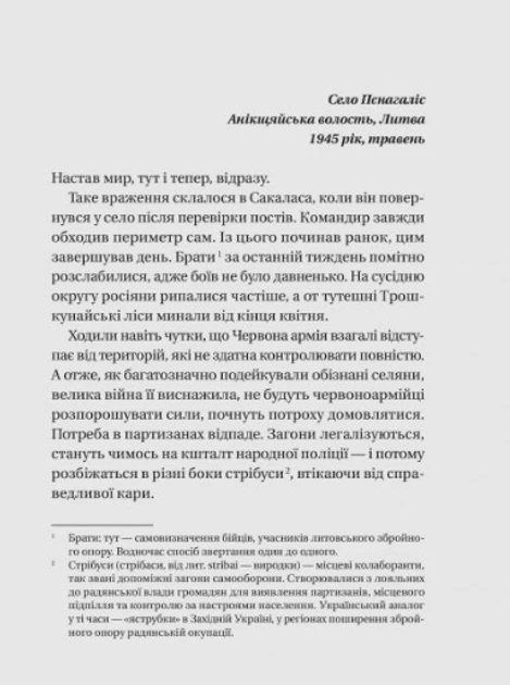 Травень 1945 року, Литва. Завершується Друга світова війна. Однак Сака лас, командир загону литовського збройного опору, упевнений: святкувати победу литовцям зарано. Адже з розгромом нацистської Німеччини державну незалежність Литви не відновлено. Територію знову контролює радянська влада. Замість визволення й свободи вона принесла терор, репресії, на силу. Литовські села змушені годувати армію оккупанта. «Лісові брати» — так називають собі партизані, які стають регулярною армією підпільної литовської держави. Герої роману, Сакалас, Лютас, Тарзанас, Ажуолас, Шарунас та українець Іван Мартинюк, назв Йонасом, являють читачам колективний портрет повстанців, що кинули визов російській окупаційній владі. Вони раз-по-раз доводять: всесильна радянська держбезпека на чужій землі може виявитися безсилою…