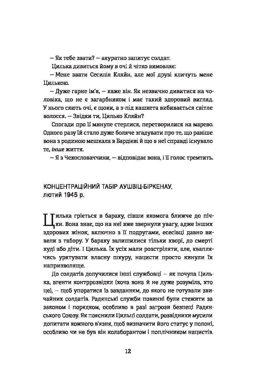 Її краса стала її спасінням, але й її вироком. Сесилії Кляйн (Цильці) було лише шістнадцять, коли вона потрапила до Аушвіца. Вона вижила там, де гинули тисячі, але ціна виживання виявилася надвисокою. Звільнення не принесло їй волі. Звинувачена у «колаборації з ворогом», дівчина замість дому потрапляє у новий кошмар — виправно-трудовий табір у Сибіру. Чи зможе вона знайти сили жити далі, коли весь світ, здається, проти неї? Це пронизливий розповідь про те, що навіть у найтемніших годинників у серці людини залишається місце для любові, надії та людяності.