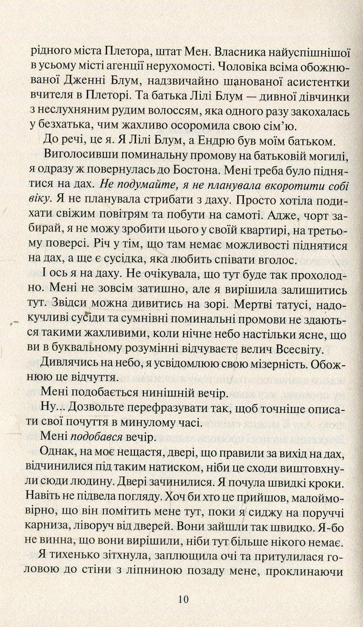 Книга 1 “Покинь, якщо кохаєш” Головна героїня Лілі, прототипом якої частично постає сама авторка, втрачає тата й знову поринає у мемуари про непросте дитинство. Будинок її батьків, шанованих та пристойних громадян, ніколи не був затишним сімейним гніздечком, адже Лілі з мамою жили у постійному напруженні через агресивний характер тата. Нарешті дівчина готова ступити на свій шлях і збудувати свою батьківщину. Однак їй не вдасться знайти спокій, поки вона не здолає всіх тіней минулого і не наважиться розірвати зачарований круг, сплетений з правди, страху, прощення, нерішучості та любові. «Покинь, якщо кохаєш» — це психологічний роман-драма американської письменниці Коллін Гувер. Насичена сентиментальна проза розкриває гостросоціальну тему домашнього насильства, аб’юзивних стосунків та непростого вибору між коханням та власною безпекою. Мовою оригіналу назва книги звучить як “It Ends With Us” (“Це закінчитися на нас”). Навіть тут йдеться про розрив колу насильства, коли демони, що здавались надійно приспаними у колисці минулого, зненацька наздоганяють у дорослій житті, а нове кохання віддзеркалює сімейні стосунки батьків… «Покинь, якщо кохаєш» — про вихід із замкненого колу токсичних стосунків Лілі Блум. Вона на власні очі бачила жорстке насильство над її матір’ю, тщательно сховане для збереження репутації батька. Вже після смерті батька, 23-річна Лілі тікає у Бостона, щоб уже там розпочати життя з чистого листа. У Бостоні частка зіштовхує її з Райлом Кінкейлом — впевненим, успішним та гарним нейрохірургом, в обіймах якого Лілі відчувається, мов у казці. Він розумний, остроумний, харизматичний і здатний захистити. Він – її ідеал. І так легко не помітити червоних прапорців, які починають майоріти один за одним на тлі п’яного туману счастья… Ідеал поступово перетворюється на чудовисько, щасливий світ руйнується, і свідомість Лілі Блум. Чи вистоить Лілі, чи стане їй сил розірвати зв’язок попри шалену пристрасть і всеосяжну ніжність, яку так уміло викликають до себе аб’юзери? Авторка застерігає своїх читачок та читачів від потрапляння до тіней аб’юзивної любові. У формі захоплюючої художньої оповіді Коллін Гувер відверто говорити про емоційні качелі, привабливість аб’юзерів, гру на емпатії та жалості й ґазлайтинг. Купити «Покинь, якщо кохаєш…» — це зробити крок назустріч здоровому розумінню стосунків, самоцінності та гармонії, водночас насолоджуючись майстерно написаною сентиментальною прозою.