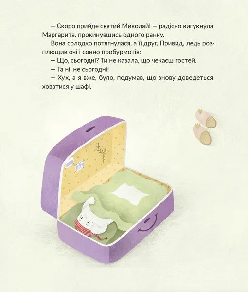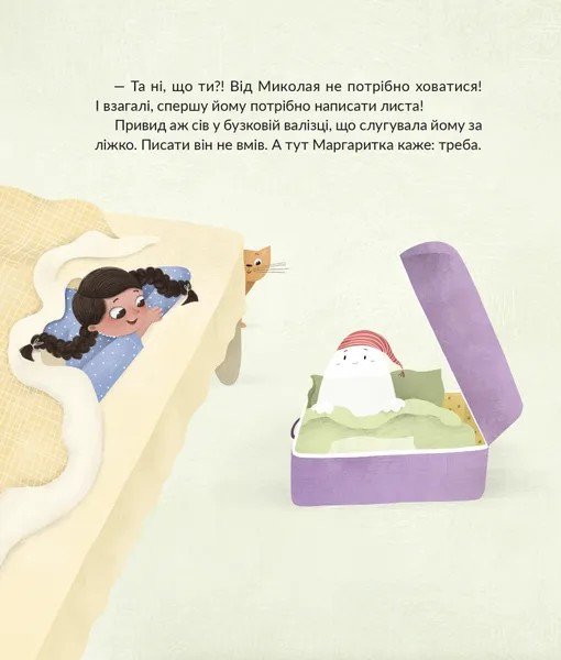 Одного ранку Маргарита розповідає своєму другові Привиду, що невдовзі до них завітає Святий Миколай. Привид дуже здивований, бо ніколи не чув про святого. А ще він засмучується, коли Маргарита пише святому аркушу з проханням, бо сам він писати не вміє. Тож Привид просити Маргариту дописати в листі і своє бажання: він мріє навчитися читати і писати. Чи здійснюватиметься бажання Маргаріті і Привиду — читайте у книжці, яка є продовженням пригод героїв «Привида, який не міг заснути».