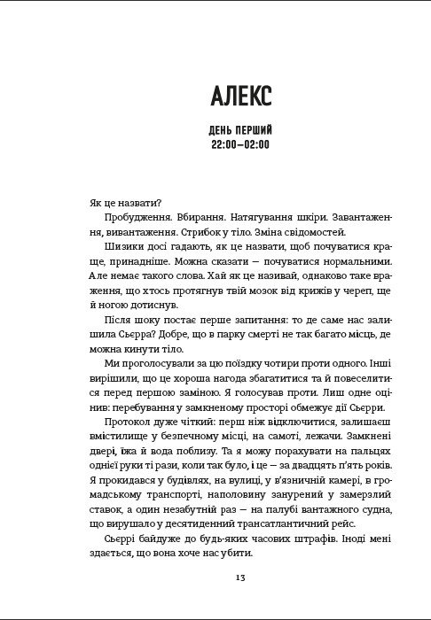 Уявіть, що ваше тіло не належить вам. Ви ділите його з чотирма іншими особами, по черзі керуючи спільним «вмістилищем». Це не божевілля, це майбутнє. Комуна з п’яти свідомостей живе за чіткими правилами, доки хтось не починає смертельну гру. Один із них зникає. Тепер четвірці, що залишилася, треба розгадати загадку: хто полює на них? Зовнішній ворог чи, що найстрашніше, один із них самих? Дебютний роман Ґая Морпасса — це напружений трилер, де неможливо втекти від убивці, адже він може ховатись у твоїй власній голові.