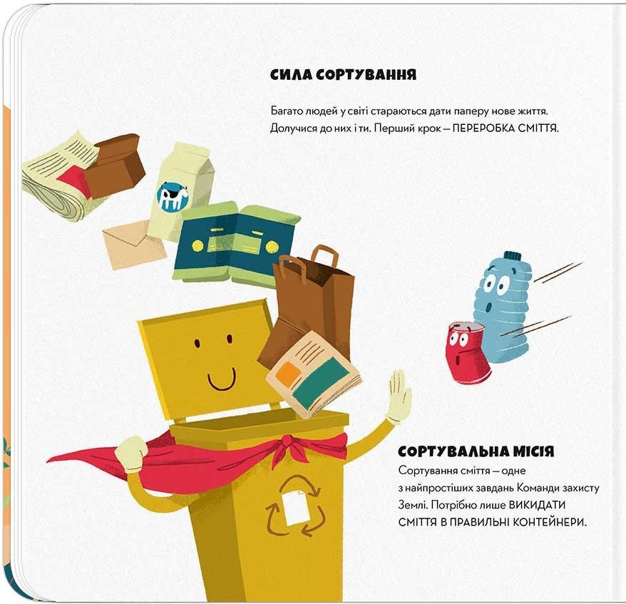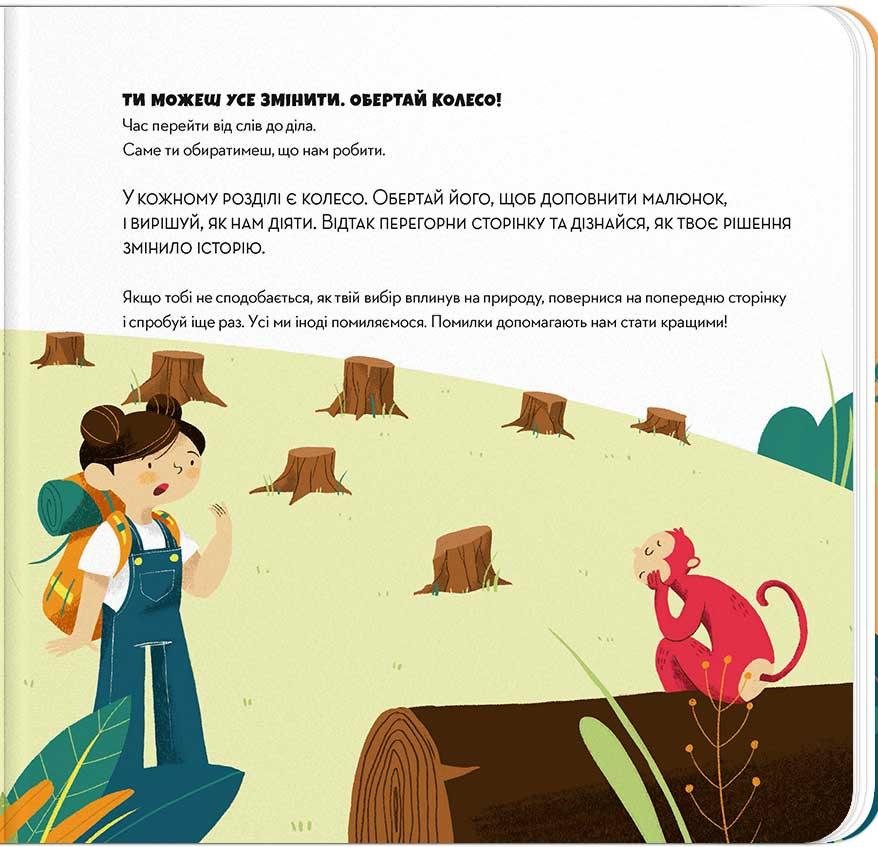 Серія «Рятуй Землю» у простій і водночас інтерактивній формі показує дітям, як їх щоденні рішення можуть покращувати або шкодити довкіллю. На кожній сторінці коротко описано життєву ситуацію, а поруч – рухомі колеса, які дають змогу обернути дію і відразу побачити її наслідок для планети. Такий формат перетворює екологію на зрозумілу гру: діти швидко засвоюють, що саме вони можуть робити, аби зберігати Землю, і поступово вчатися застосовувати ці корисні навички у реальній житті.