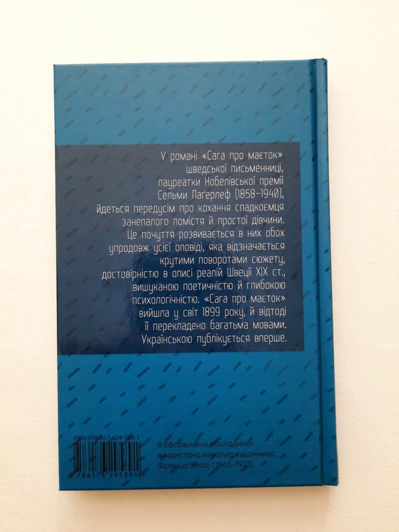 У романі «Сага про маєток» шведської письменниці, лауреатки Нобелівської премії Сельми Лаґерлеф (1858–1940), йдеться передусім про кохання спадкоємця занепалого помістя та простої дівчини. Це почуття розвивається в них обох упродовж усієї оповіді, яка відзначається крутими поворотами сюжету, достовірністю в описі реалій Швеції ХІХ століття, вишуканою поетичністю та глибокою психологічністю. «Сага про маєток» вийшла у світ 1899 року, і відтоді її переведено багатьма мовами. Українською публікується вперше.