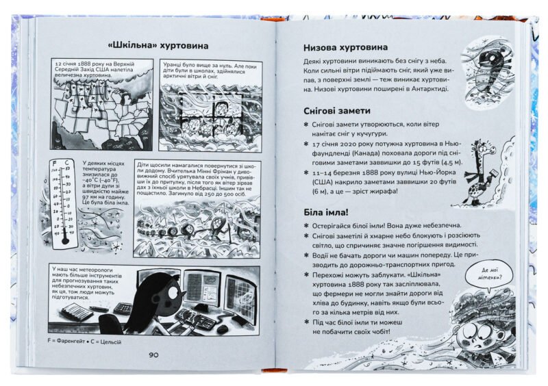 Ситуація кардинально змінюється, коли на містечко насувається потужна хуртовина, що несе із собою не лише купу снігу, а й справжні випробування для майбутнього метеоролога. Через пригоди Зіка читачі дізнаються про таємниці природних явищ, навчаться розрізняти типи опадів та зрозуміють, як працює справжня метеостанція. Автор майстерно поєднує художню розповідь із науковими фактами, подаючи їх легко та з добрим гумором.