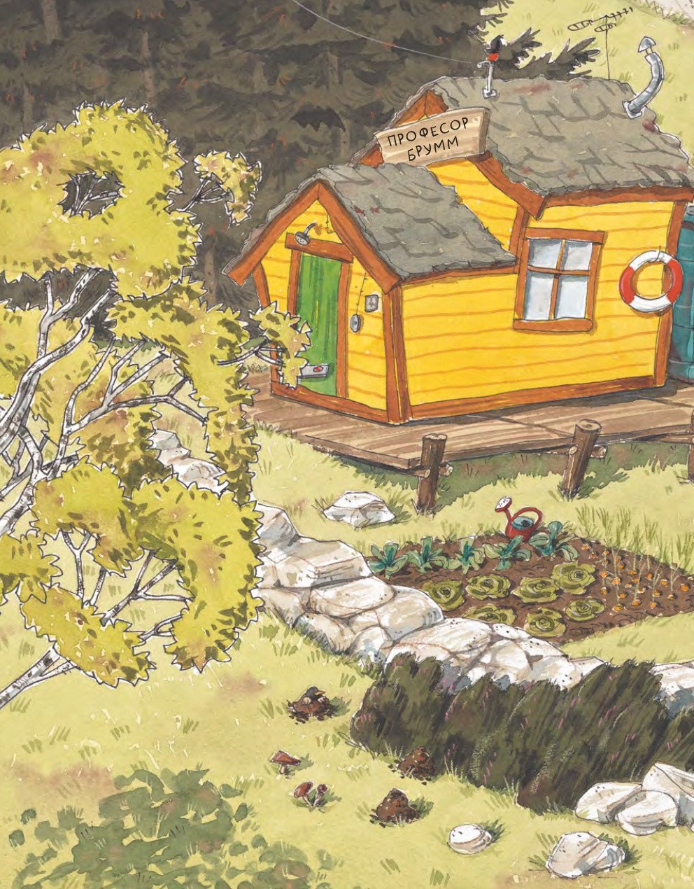 Професор Брумм – той самий чудернацький ведмідь, якому дуже складно прожити хоч день без пригод. Незграбний, добродушний і безнадійно веселий, він постійно втягує собі у нові халепи, але ніколи не лишається сам: поруч його вірні напарники — балакуча золота рибка та завжди серйозний барсук. Разом вони мешкають цілі тижні суцільних бешкетів: то вирушають купатися, то випадково опиняються за кермом потягу, то блукають островами і зіштовхуються з фантастичними створіннями. Щодня — нова пригода, новий сміх і нова історія, яка знову доводить: із професором Бруммом нудьга просто не має шансів.