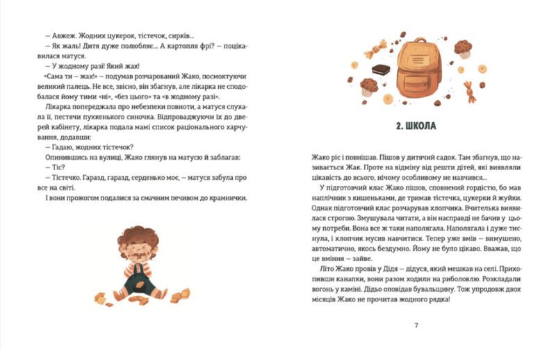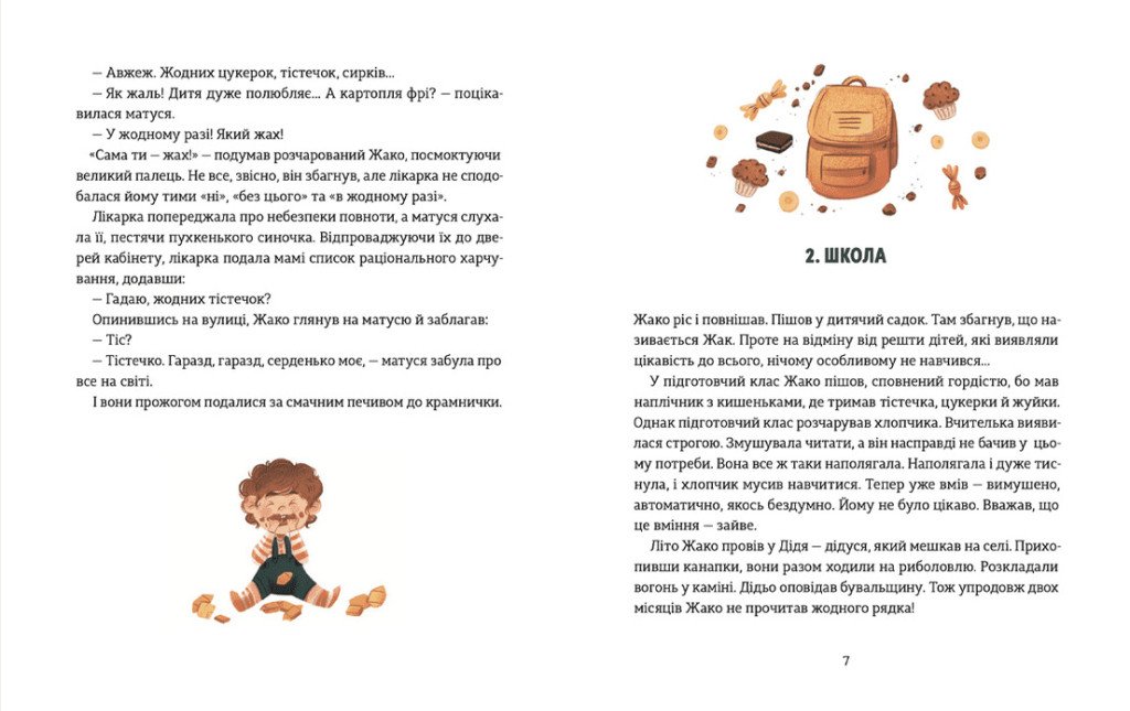 Над усе на світі малюк Жако полюбляє поїсти, тож приходити до підготовчого класу школи «пампушком». Читання та лист здаються Жако не дуже цікавим заняттям, як і арифметика. Але одного разу в бібліотеці він знаходитиме рецепт тістечок, фото яких дуже привабило хлопчика. Він вирішує переписати рецепт, щоб приготувати такі ж будинки. Він починає розуміти, що навчання потрібне навіть для випікання — відтепер улюбленого заняття. А ще завдяки випічці Жако знайде добрих друзів.