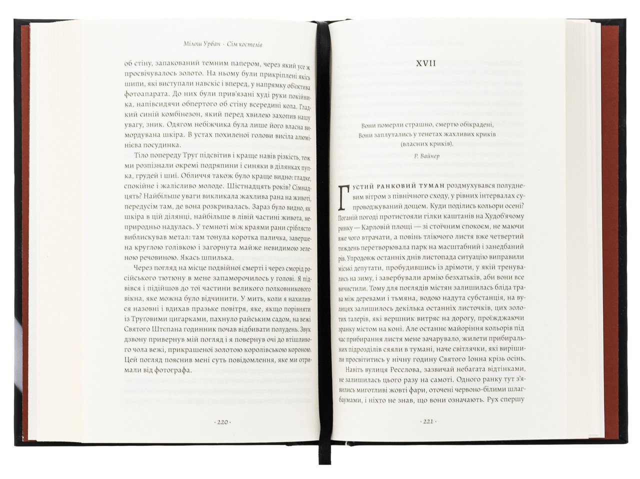 Книга Сім костелів. Готичний роман із Праги. Мілош Урбан (на русском) Умисні вбивства, скоєні з метою самозахисту; детективні пошуки, що ведуть в зворотному порядку; оспівування морального падіння і чистої, але спотвореної любові Сім костелів і сім загадкових смертей. Осінь принесла до Праги не лише холод і паморозь, а й тщательно спланований задум, що пов’язував жахливі вбивства, розкидані по старовинних костелах міста, з долею невдахи, на ім’я К. — тіні, вигнанця без роботи і майбутнього, але з пристрасною любов’ю до міста, яке Він живий у сутінках великої історії, що день за днем прала стару Прагу і замінювала її порожніми та холодними будівлями. Страждання від безсилого споглядання цього занепаду точили його душу, доки на світ не вийшов загадковий лицар, який побачивши у К. щось більше, ніж просто жалюгідного спостерігача. Нарешті настав час, коли таємниці, змінюючи свою подобу, повідають правду, яку століттями приховували величні костели, адже пробудився відкривач прихованих істин… Хто вбивця, а хто жертва? Чи винний той, хто заплющивши очі на злочини? І чи зможе К. знайти істину за завісами минулого, перш ніж його власне життя буде знищено? Відповіді заховані біля стін костелів, серед вузьких вулиць і місць, де зупинився час і ніхто сторонній не наважується зайти.
