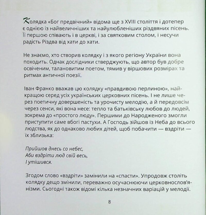 Українське Різдво – це музика, що лунає крізь століття. Цей унікальний співаник оживляє давні традиції за допомогою сучасних технологій. Під обкладинкою зібрано 30 перлин нашого спадщини: від колядок, які знає кожен, до рідкісних щедрівок із унікальними сюжетами, що були знайдені у віддалених куточках України. Але це не просто книга текстів. Завдяки QR-кодам сторінки перетворюються на живий концерт. Скануйте та слухайте магічне виконання гурту «Курбаси» та інших музикантів. Співайте разом з ними, відкривайте нові мелодії та впустіть у свій дім справжній дух свята.