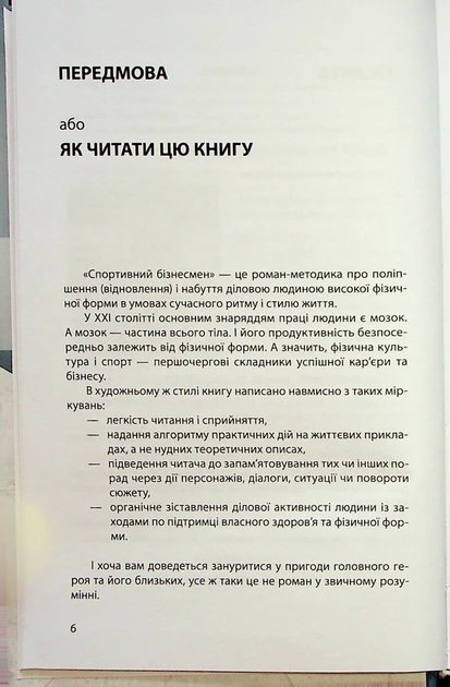 Це роман-методика про покращення (відновлення) здоров’я та надбання високої фізичної форми ділової людини в умовах сучасного ритму та стилю життя. У XXI столітті основним орудням праці людини є мозок. А мозок – частина всього тіла. І його продуктивність безпосередньо залежить від фізичної форми. А значить, фізична культура та спорт – першочергові складові успішної кар’єри та бізнесу.