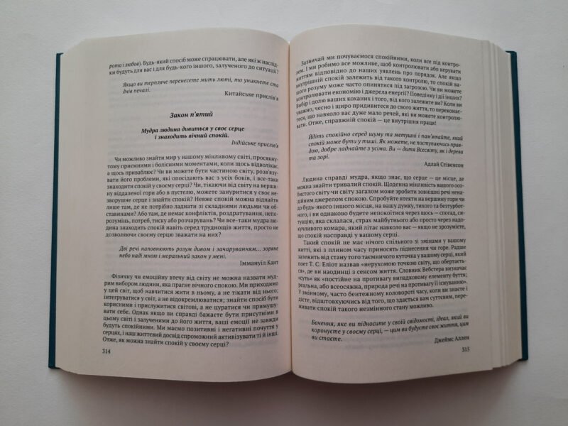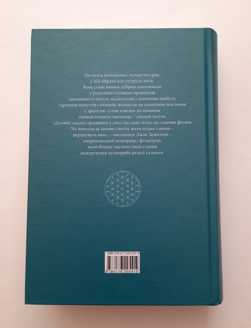 Ця книга позачасова та позакультурна, у ній зібрана вся мудрість віків. Вона стане вашим добрим помічником у розумінні головних принципів наповненої життя, надихатиме і допоможе здобути гармонію почуттів і вчинків, налаштує на позитивне мислення і, нарешті, стане ключем до пізнання найважливіших таємниць – законів життя. «Духовні закони працюють у світі так само чітко, як і закони фізики. Чи вивчати ці закони і потім жити згідно з ними – вирішувати нам», – наголошує Джон Темплтон – американський миллиардер і філантроп, який більшу частину своїх статків пожертвував на потреби релігії та науки. Людське життя досить коротке, і від нас залежить, як прожити його щасливо, успішно і корисно, як стати духовно багатшими і піти за своїм покликанням, як дарувати любов ближньому і дякувати за все, від чого душа співатиме, а розум стане яснішим.