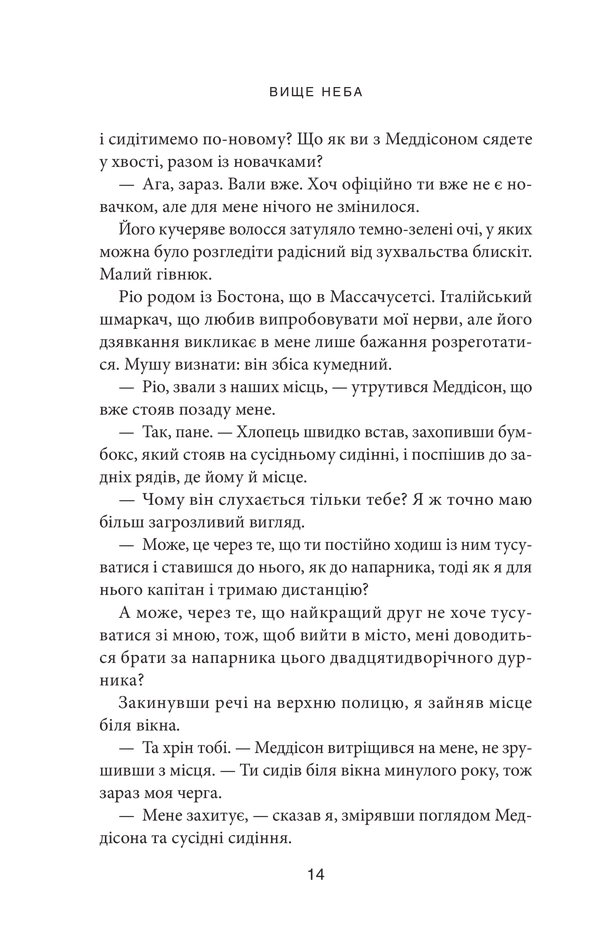 Дебютна книга циклу “Місто вітрів” – “Вище неба”, написана під час пандемії, стала TikTok-сенсацією. Вона відображає особистий досвід Ліз, адже головна героїня, як і сама авторка, працює бортпровідницею. Бортпроводиця Стіві починає працювати на приватному літаку хокейної команди із Чикаго, і відтоді її життя змінюється. Тут вона знайомиться з харизматичним Єваном Зандерсом, чий йогоїзм та неабияка самовпевненість викликають роздратування. Проте з кожним новим польотом Стіві помічає, що під маскою зарозумілого поганця ховається щось інше. Колись вона зареклася мати романтичні стосунки зі спортсменами, проте дівчині щодалі важче опиратися своїм почуттям до Зандерса. Стіві опиняється на роздоріжжі між відданістю власним принципам і нездоланним потягом до харизматичного хоккеїста. 18+ Про автора: Ліз Томфорд – талантлива американська авторка сучасних любовних романів, яка вміло створює історії про здорові стосунки з харизматичними чоловіками, що миттєво підкорюють серця читачів. Її твори вражають гострими діалогами і вміло інтегрованою пристрастю, що робить кожний роман незабутнім.