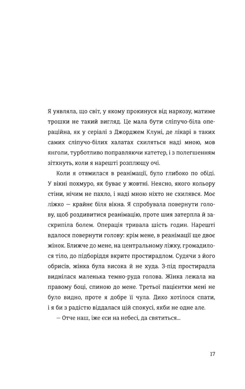 Ця повість написана у формі сповіді журналістки, яка стикається зі страшним діагнозом. Авторки створили текст на основі реальних подій, що тісно переплелися з художнім вимислом. Героїня чесно ділиться історією своїх фізичних та емоційних трансформацій від початку хвороби до завершення лікування. Читатель стає свідком глибоких потрясінь та поступових змін у світогляді Ніни. Книга сповнена оголених емоцій і розповідає про силу, здатну рухати скелі. Це історія зі щасливим фіналом, яка доводить цінність шкірного прожитого дня.