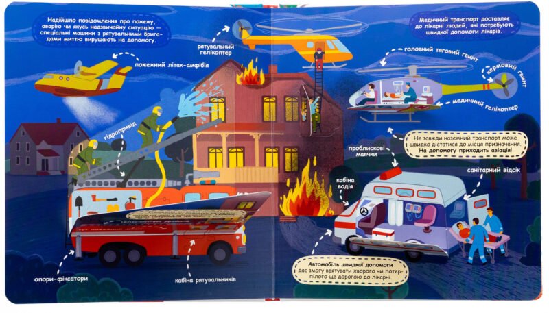 Ця книжка — справжній інтерактивний гараж, де під однією обкладинкою зібрано найпотужніші та найкорисніші механізми нашого світу. Вона перетворює звичайне знайомство з технікою на захопливе дослідження, показуючи дитині, що за кожною великою машиною стоїть важлива місія: від спасіння життя до будівництва міст майбутнього. Це ідеальне видання для маленьких любителів техніки, які хочуть знати не лише, як називається машина, а й як саме вона допомагає людям у повсякденній житті. Головна особливість цієї книжки – її ігровий формат. Завдяки віконцям-секретикам читання перетворюється на справжній квест. Дитина не просто розглядає ілюстрації, а стає активним учасником процесу: зазирає всередину пожежної машини, перевіряє обладнання медичного гелікоптера або дізнається, як влаштований кабінет машиніста. Це розвиває допитливість, дрібну моторику та вчить логічно мислити, поєднуючи функцію машини з її внутрішнім будовою.