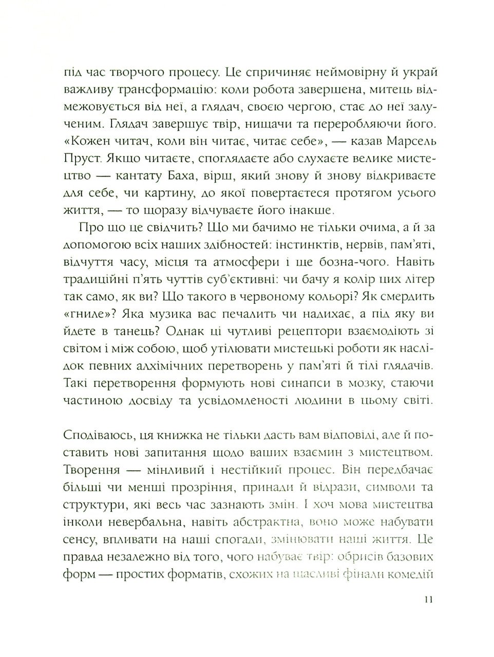 Багато хто мріє стати художником. Але як цього досягти? Навіть легендарні творці на початку свого шляху не знали, як собі зарекомендувати, де брати креативні ідеї, як увійти до кола митців, навчитися сприймати критику та осмислювати свою роль у суспільстві. Автор цієї книжки пропонує слушні поради тим, хто має творчий запал. Ці неочевидні правила, конструктивні підказки та поради допоможуть розкрити власний потенціал, навчитися максимально використовувати сильні боки свого матеріалу, розв’язувати професійні проблеми і найголовніше діставати задоволення від творчості. Ця гарна та полезна книжка, ілюстрована роботами митців минулого та сьогодення, допоможе реалізувати свої мрії представникам різних творческих галузей: живопису, фотографії, письменництва, театру. Адже талант має кожен, треба лише зуміти його розкрити. Відгуки Посібник щодо того, як створити витвір мистецтва, ознайомити з ним світ і прийняти його реакцію. Я знайшов тут ті, що можу вкрасти, тож знайдете і ви. (Остін Клеон, автор бестселера «Кради як митець») Книга Джеррі Зальця про мистецтво вдохновить вас. Хотілося б сказати, що він розкриває таємниці, але насправді це інтуїтивне знання, сформоване десятиліттями роздумів про мистецтво. Ця книжка для митців і немитців написана просто й лаконічно; вона для тих, хто усвідомлює, що практичні поради можуть містити ще й сховані містичні послання. (Стів Мартін, актер)