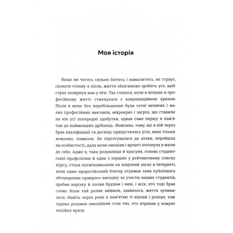 Як здолати шторм — практичне посібник із кризових комунікацій Книга «Як здолати шторм» авторства Вікторії Берещак розкриває основи стратегічних комунікацій та покроковий підхід до вирішення кризових ситуацій. В умовах сучасного інформаційного простору, де репутаційні загрози можуть виникати миттєво, ця книга стане важливою опорою для власників бізнесу, PR-фахівців та менеджерів. Що ви дізнаєтесь з цієї книги? Типи комунікаційних криз: Як відрізнити сценарії кризи та реагувати відповідно. Рання розпізнавання: Методики ідентифікації проблем на перших етапах. Дії під час кризи: Як сформувати чіткий алгоритм мінімізації негативних наслідків. Робота на випередження: Стратегії посилення бренду перед потенційними загрозами. Післякризовий менеджмент: Побудова комунікаційної системи для майбутніх викликів Про автора Вікторія Берещак — експертка у сфері стратегічних комунікацій та кризового менеджменту. За роки своєї кар’єри вона допомагала чисельним компаніям та громадським особам зберегти їхню репутацію, будуючи ефективні комунікаційні стратегії. Вона поєднує глибокий експертний підхід із практичними рішеннями, які працюють у реальних умовах. Книга для бізнесу і не тільки «Як здолати шторм» стане в нагоді: підприємцям, які прагнуть захистити свій бізнес; PR-фахівцям, які відповідають за репутацію компанії; менеджерам, що працюють над стратегією розвитку бренду; всім, хто бажає навчитися керувати репутаційними ризиками. Окремої рекомендації заслуговують на поради авторки щодо зміцнення бренду та підготовки до періодів інформаційної турбулентності. Книга «Як здолати шторм» Вікторії Берещак — це не просто інструкція для ситуацій, коли «щось пішло не так». Це стратегічний інструмент для створення стабільної системи управління репутацією та комунікаціями. Додавайте кризи з холодною головою та планом у руках!