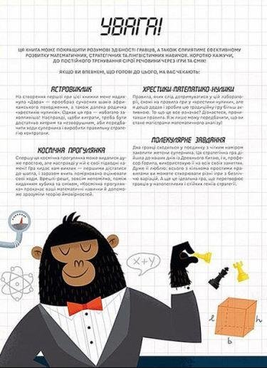 Запросіть своїх друзів разом пройти смугу перешкод у космосі або погратися у геологічні нарді. Швидкість обчислення, стратегія і логіка – це лише мала частина навичок, яких ви набудете. З останньої сторінки витисніть фішки, складіть кубик і відразу розпочинайте гру. Світ науки ще ніколи не був такий веселий!