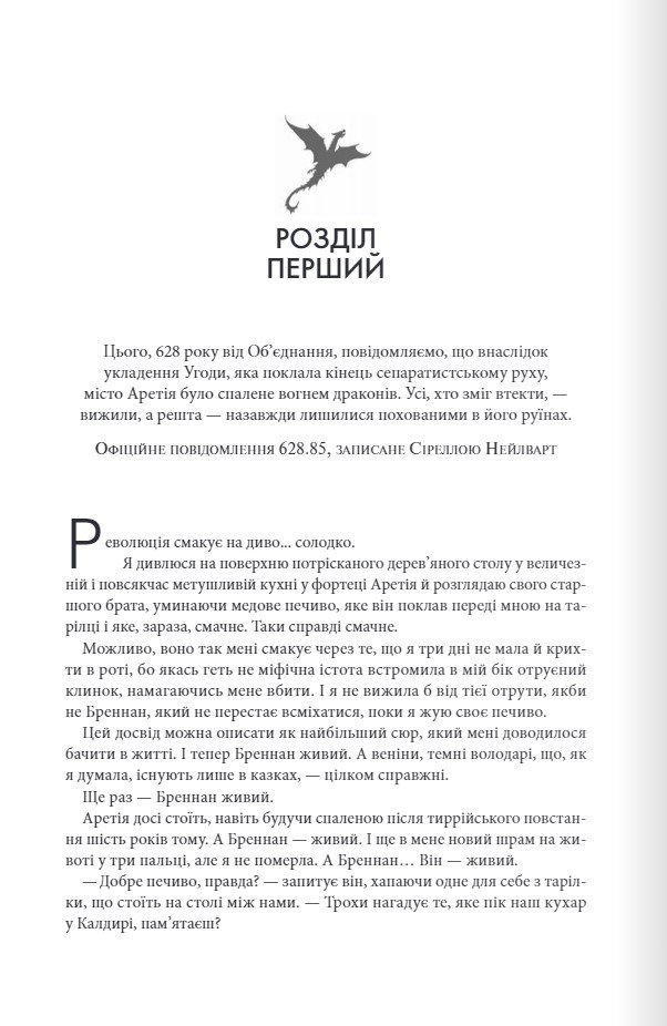 У перший рік деякі з нас втрачають життя. На другий рік ми втрачаємо свою людяність. Багато хто очікував, що Вайолет Сорренґейл загине під час свого першого року навчання у Військовому коледжі Басґіат. Однак Обмолот був лише першим надважким випробуванням, призваним відсіяти слабких, негідних і невдач. А тепер починається справжнє навчання, тож Вайолет уже переймається, як вона впорається. Річ не тільки в тому, що інший курс має бути виснажливий і неймовірно жорсткий, до того ж, цього року всадники повинні навчитися витримувати фізичний і моральний тиск. Однак є ще новий віцекомендант, який поставивши собі за особисту мету довести Вайолет, наскільки вона слабка і легкодуха, якщо тільки не зрадить чоловіка, якого кохає. І хоча тіло Вайолет не таке сильне і витривале, як у інших курсантів, вона має гострий розум і залізну волю. А керівництво забуває найважливіший урок, який засвоюєш у Басґіаті: вершники драконів встановлюють власні правила. Проте самого бажання вижити цього року буде недостатньо. Адже Вайолет знає страшну таємницю, яку століттями приховували у Наваррі.