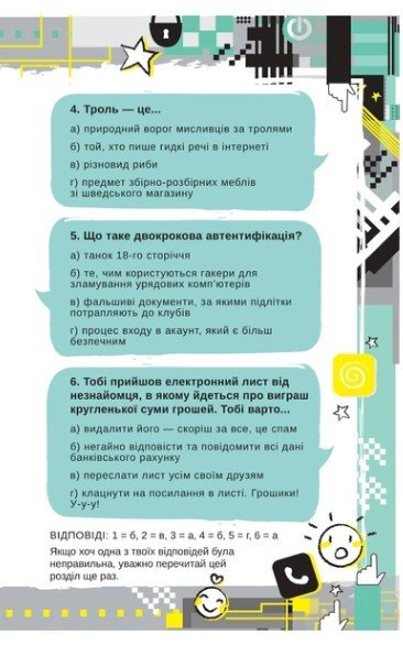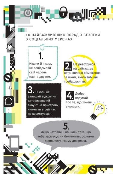 Знаєте ли ви, як почуватися захищеними в інтернеті? Відповідь на це запитання можна знайти в книжці “Життя онлайн: як уберегтися від кібер-булінгу, вирусів та інших неприємностей в інтернеті”. У виданні є ряд практичних порад зі створення сторінок у соціальних мережах, правила поведінки з інформацією, приватними даними, взаємодії з користувачами та дотримання авторського права. Крім того, у книжці читач знайде інформацію та корисні підказки щодо секстингу, кібербулінгу та інтернет-мошенництва. Прочитавши книжку, ви навчитеся правильно реагувати на «тролів», підібрати надійний пароль та безпечно знаходити друзів у мережі. Розуміючи, як працює інтернет та як його можна використовувати, щоб нашкодити іншим, дитина зможе захистити свої дані в мережі та дізнатися, а головне – знати, до кого можна звернутися за допомогою, якщо раптом впадете в халепу в інтернеті. Книга стане в пригоді дітям, які активно починають користуватися інтернетом, а також їхнім батькам, котрі хочуть знати, як правильно пояснити дитині правила поведінки в мережі.